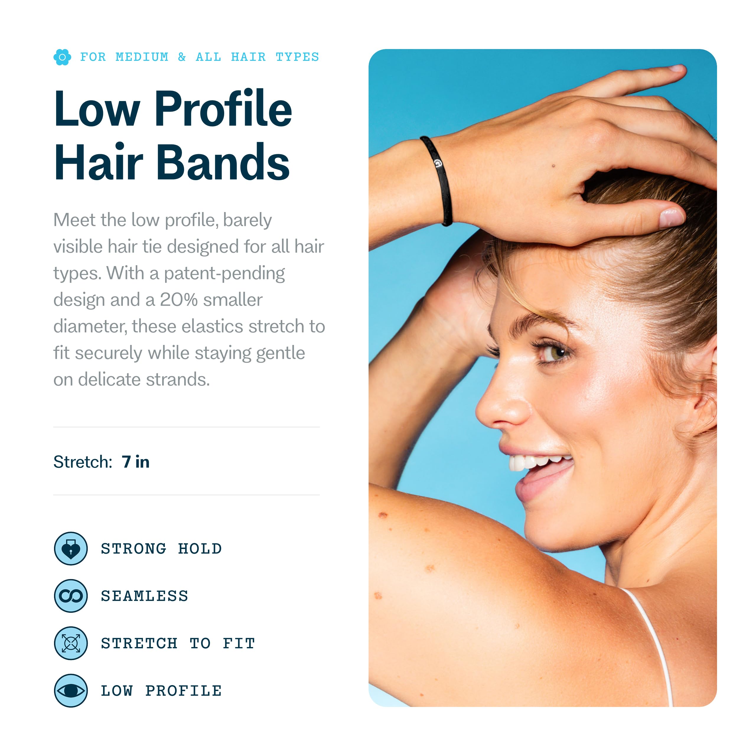 Introducing the perfect balance of hold and comfort with Gimme Beauty's Low Profile Hair Bands. These thoughtfully designed hair ties combine innovative seamless construction with premium elastic materials to deliver reliable hold without compromising your hair's health.Each hair band features our signature ultra-thin profile, making them virtually invisible in your hairstyle while maintaining impressive strength. The specialized elastic material provides consistent tension that keeps your style secure without the typical pressure points or damage associated with traditional rubber bands. Whether you're creating a sleek ponytail, casual bun, or intricate braid, this versatile hair accessory adapt to your styling needs.Our professional-grade hair ties are engineered specifically to prevent common hair concerns. The seamless design eliminates snagging and pulling, while the premium elastic maintains its shape and grip through repeated use. The low-profile construction makes these bands particularly suitable for fine hair, though they're equally effective for thick, textured hair types.Perfect for gym workouts, office looks, or casual styles, these women's hair bands deliver consistent performance while treating your hair with the gentleness it deserves. Experience the difference of trendy hair accessories designed to enhance your styling routine.At Gimme Beauty, we believe hair solutions aren't one size fits all. We understand that each person's hair journey is unique, which is why we've designed these hair ties to work for all hair types, helping you feel confident and unstoppable in your daily life.We celebrate the sisterhood that grows from our shared experiences with hair. While some brands focus on exclusivity, we believe in creating accessible, inclusive products that work for everyone. Our mission goes beyond hair accessories—we're here to amplify your confidence because we know that confident women are unstoppable.