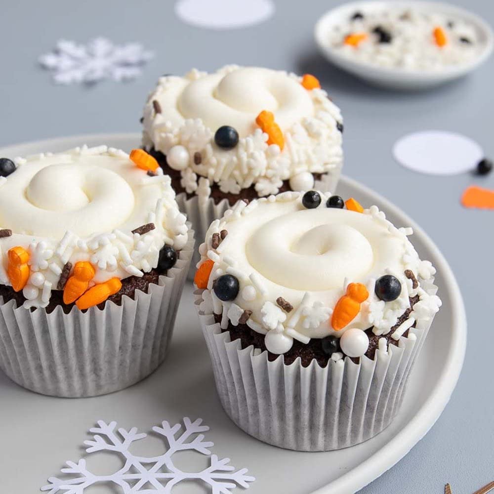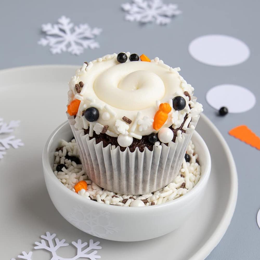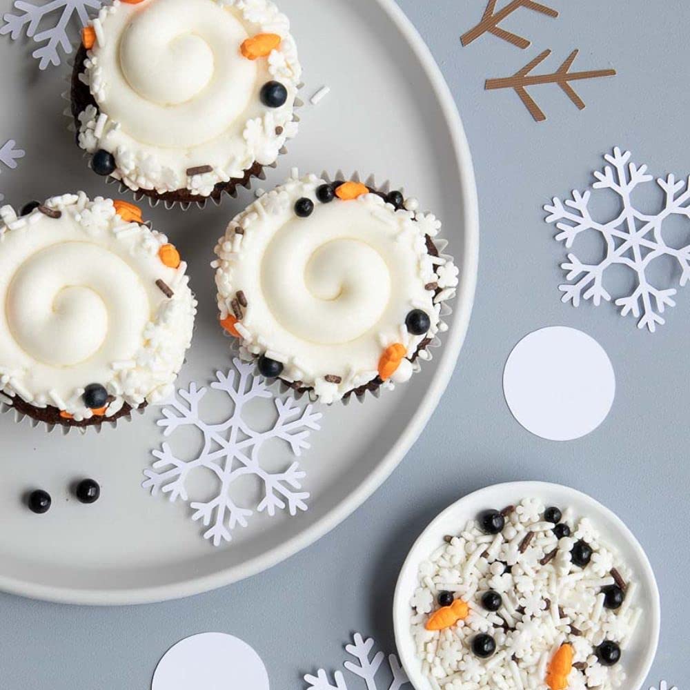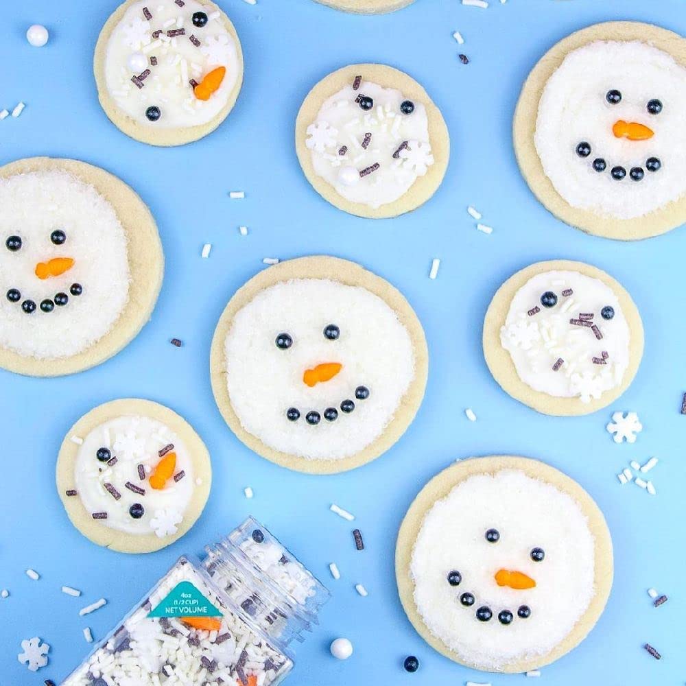 ⛄ 𝗙𝗨𝗡𝗙𝗘𝗧𝗧𝗜 𝗘𝗔𝗦𝗬 𝗧𝗢 𝗨𝗦𝗘 - These sweet and delicious cupcake sprinkles create professional decorations at home to prepare yourself for a fun burst of color and flavor by adding as many fancy decorating winter sprinkles for your cake, cupcake, or ice cream