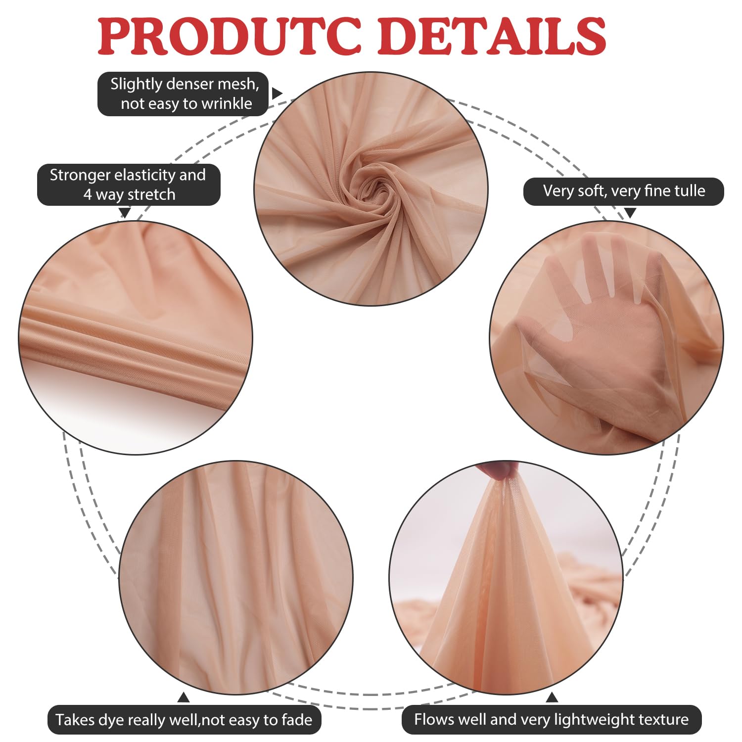 Multi Purpose: Soft and breathable mesh fabric is great for making lingerie, tulle skirt, dress for women and see through skin colour top