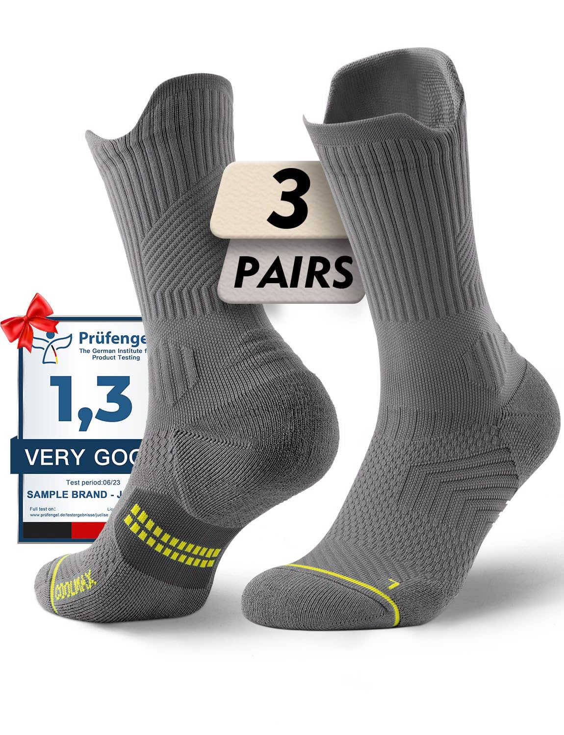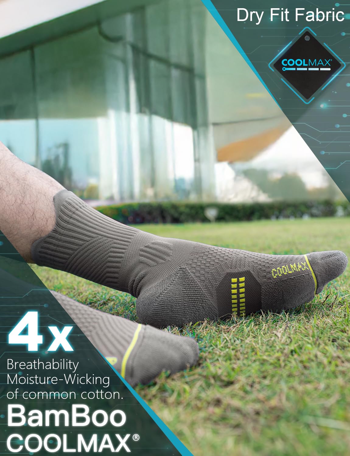 【Advanced COOLMAX & Organic Bamboo viscose Blend】: Keep your feet dry and fresh with our running socks! The COOLMAX fabric quickly wicks away sweat, while organic bamboo viscose helps minimize odors and keeps your socks feeling clean. Enjoy superior comfort and freshness with this innovative sock technology!