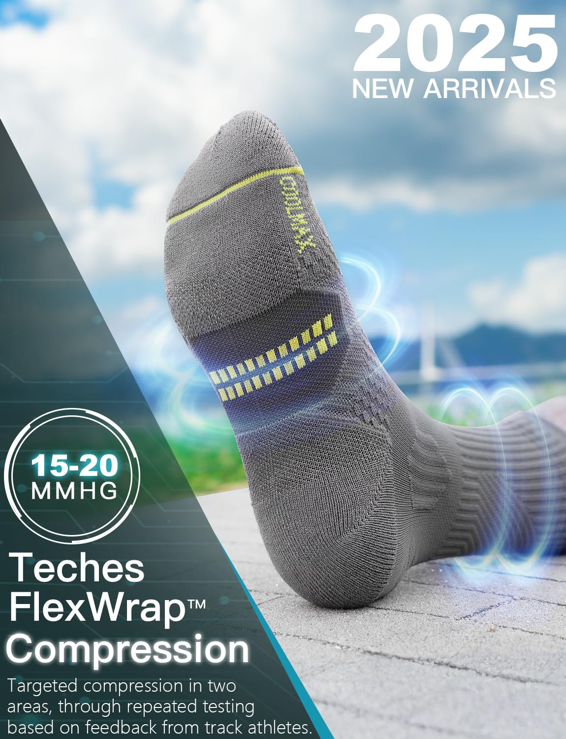 【Flexwrap Compression】: Engineered with 15-20mmHg graduated compression to stabilize arches and calves, these performance socks minimize muscle oscillation and fatigue during dynamic movements like running, court sports (basketball, pickleball, tennis), hiking, cycling, and golf. Their targeted support promotes endurance, reduces post-activity soreness, and accelerates muscle recovery for athletes training or competing across disciplines.