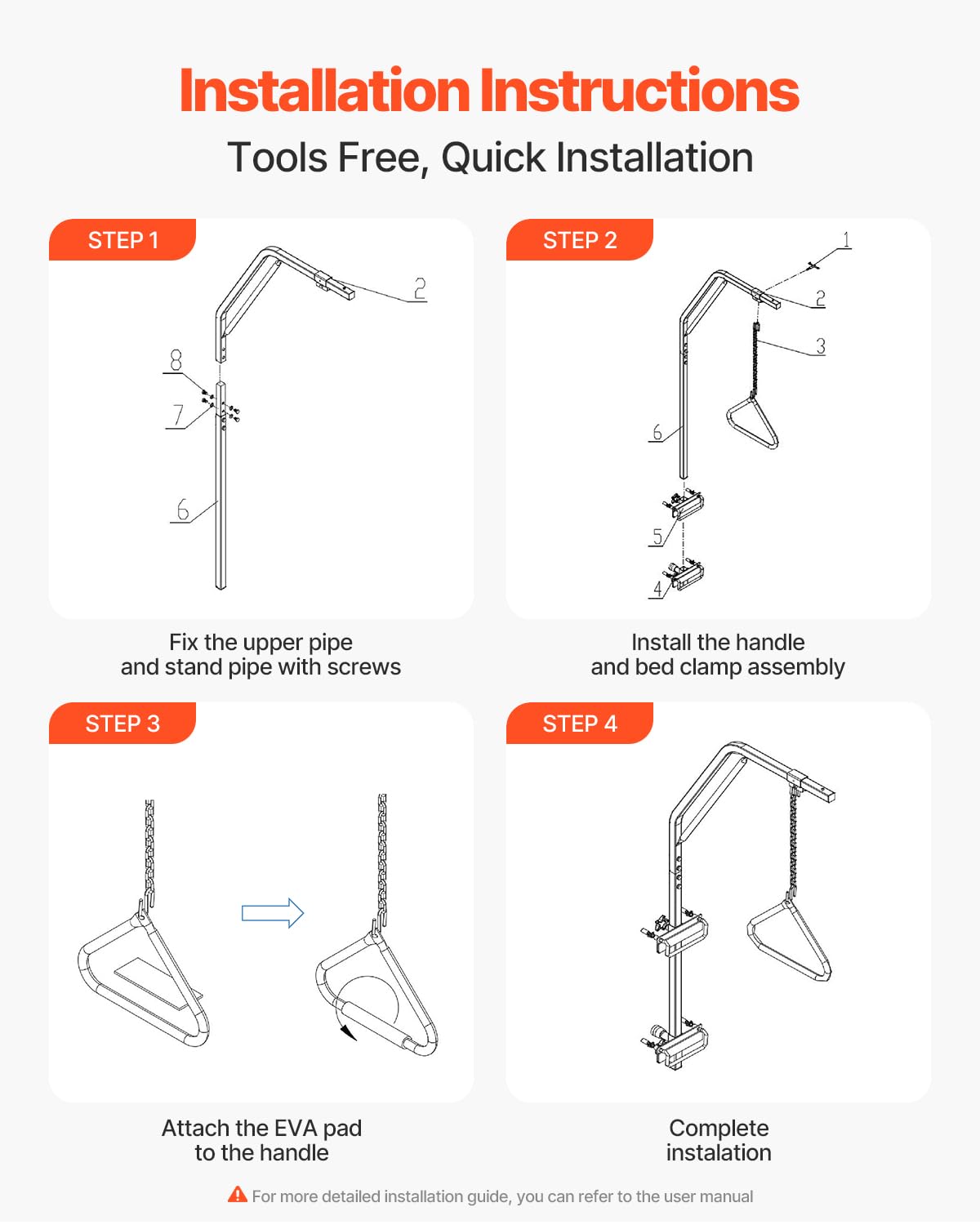 Please Note: This trapeze bar need be securely attached to the bed headboard. Before use, ensure that the headboard can support your body weight and that its thickness is less than 2 inches (5 cm).