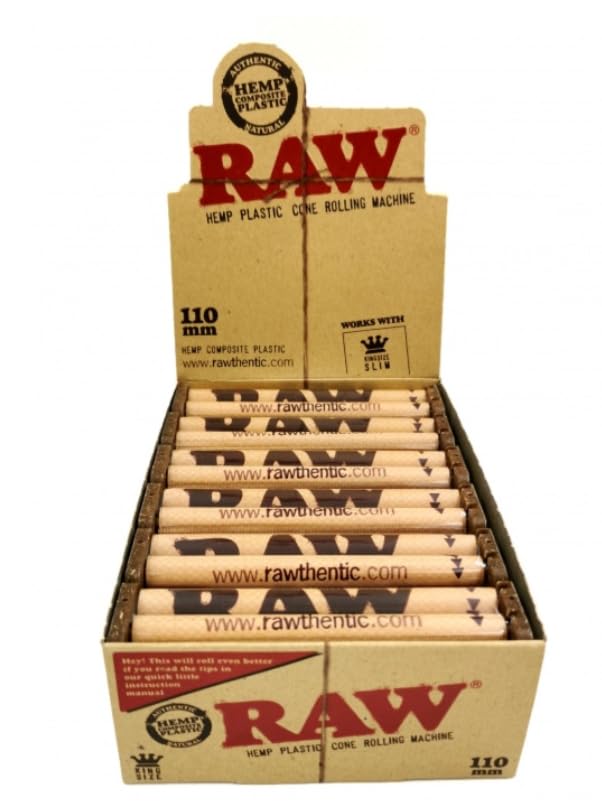 The new RAW Cone Rolling Machine works with both King Size and 1 ¼. It’s made with genuine hemp plastic.