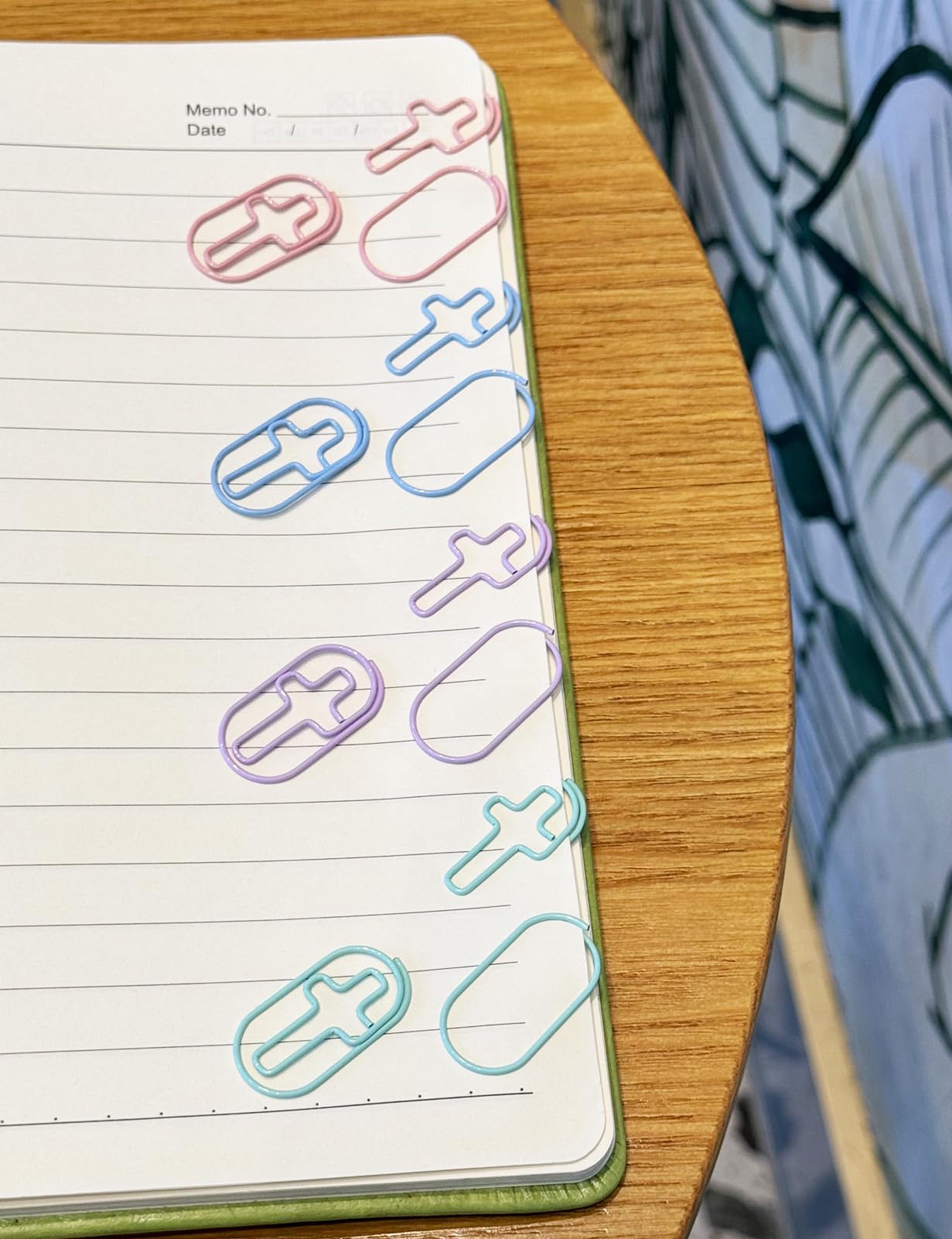 【Cross Shaped Paper Clips】Cute rooster shaped paper clips with small bookmarks in 4 color. Cute design with shiny appearance, add a lot of fun to your life.