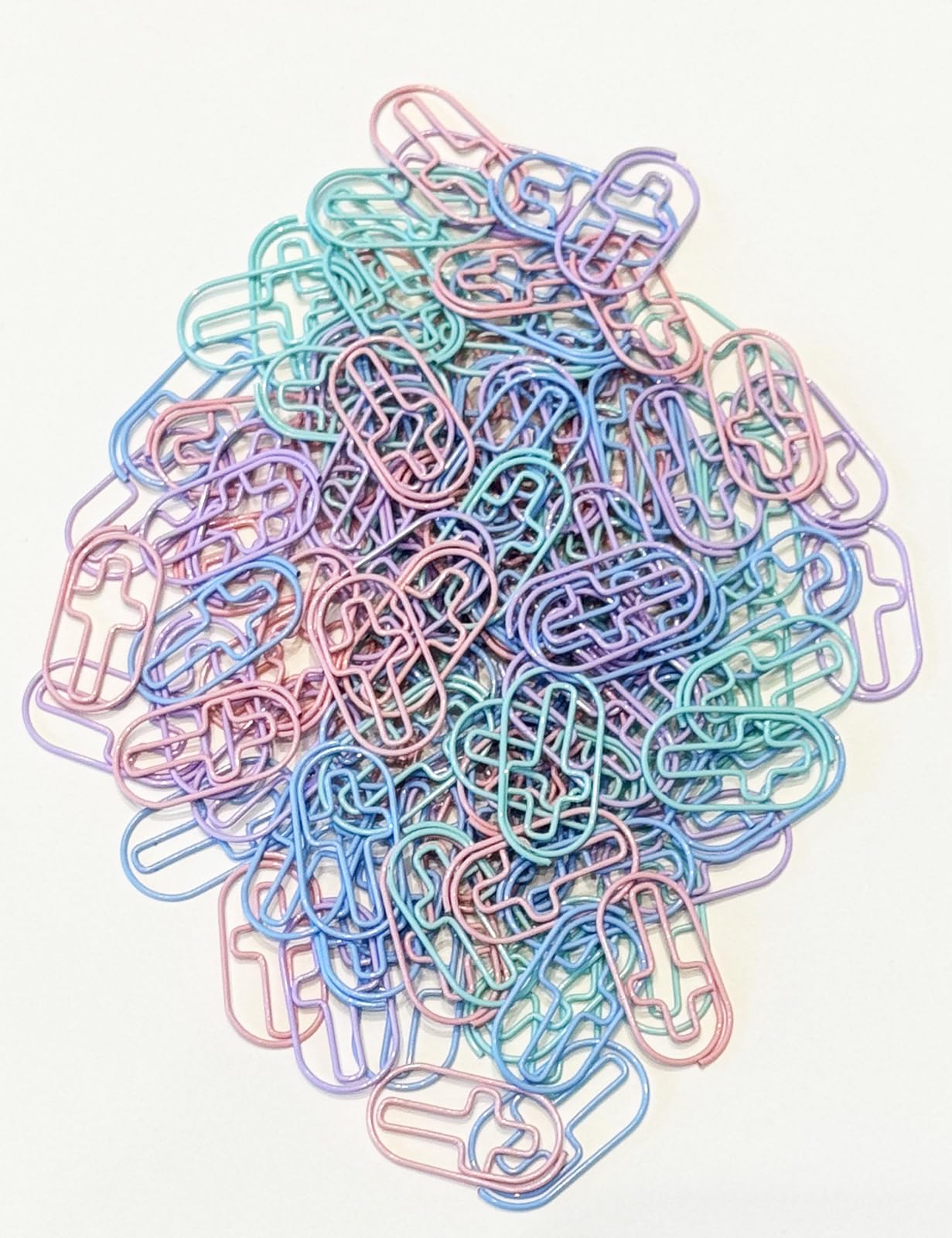 【60pcs Bulk Paper Clips】15pcs light green color + 15pcs light pink color + 15pcs light blue color + 15pcs light purple color.