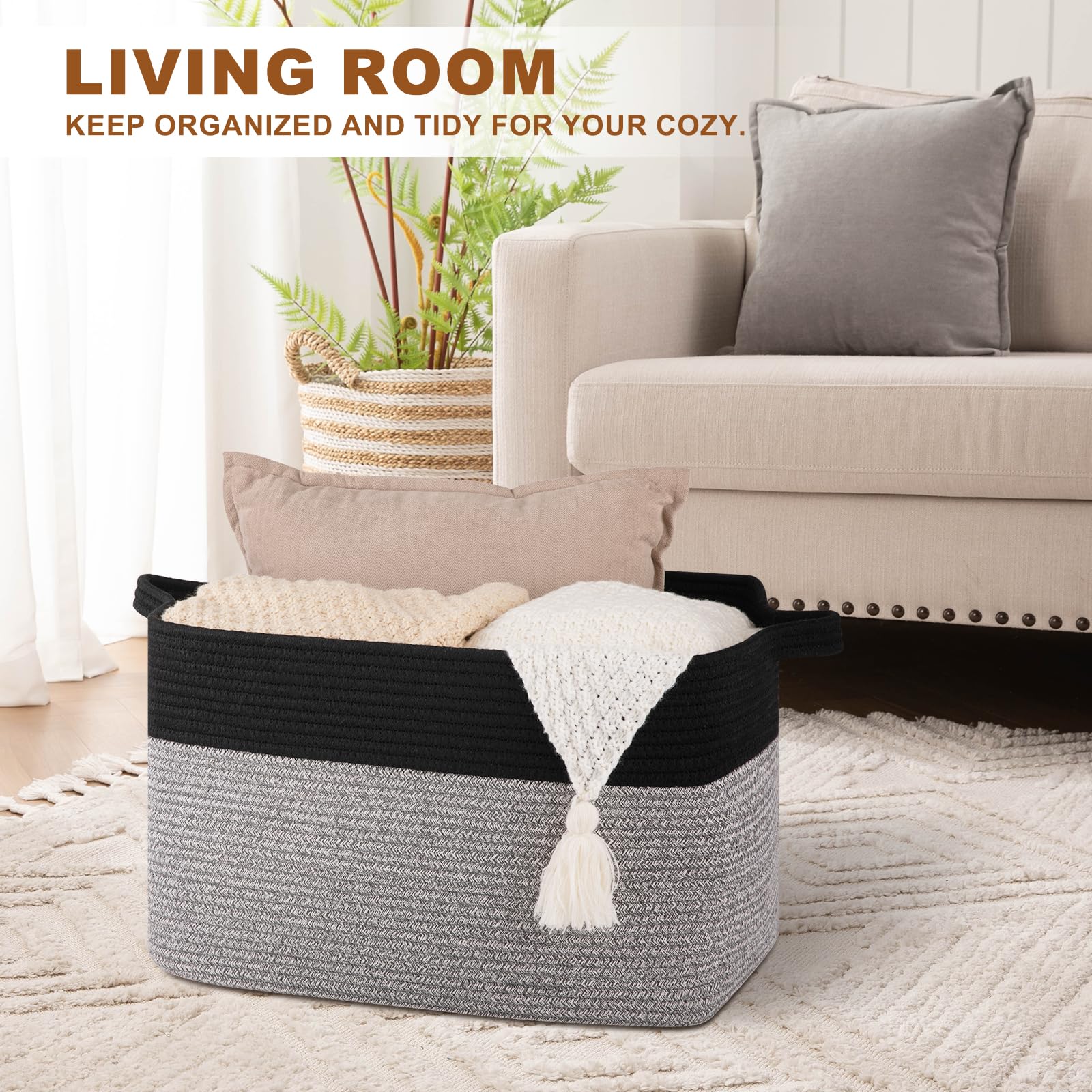 Premium Cotton: Crafted from 100% soft cotton rope. Our storage basket is safe and gentle for kids and pets, Unlike plastic baskets, is chemical-free and devoid of rough edges. It is more durable than a plastic basket