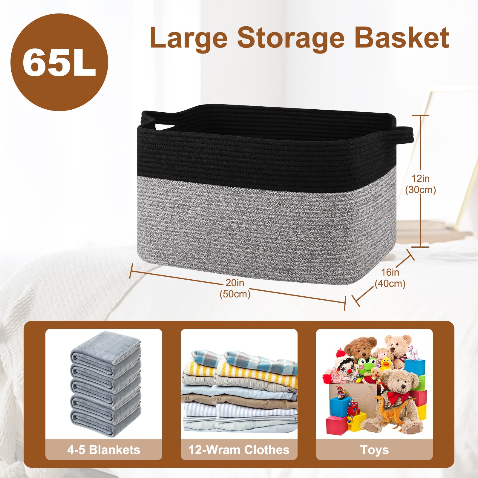 Safe and Portable Handles: Durability handles design,easy to move and take away, allowing you to move items conveniently even when full of blankets and toys. Handmade cotton rope will last for years of continuous use