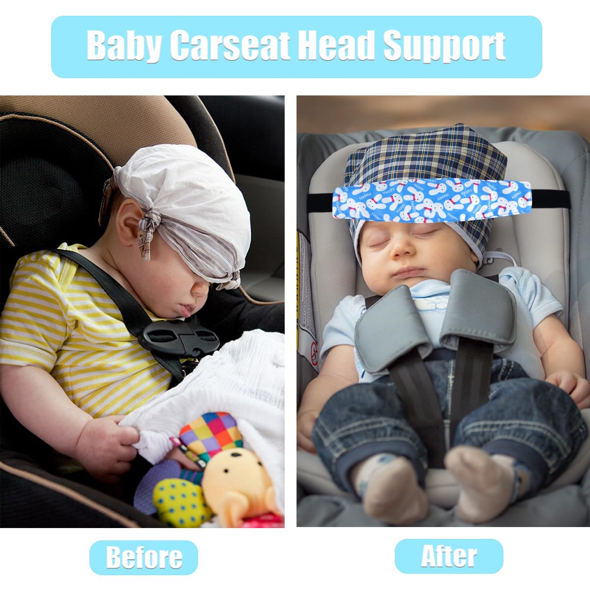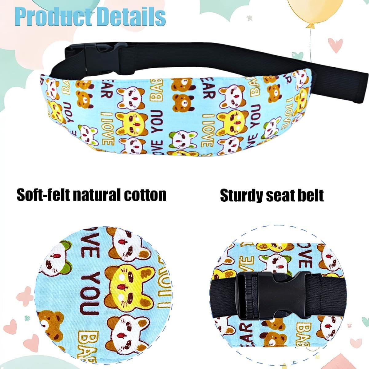 Custom Fit: The elastic band with a flexible buckle allows easy adjustment to fit different head sizes, ensuring a secure and comfortable fit for your little one during car rides or long journeys.