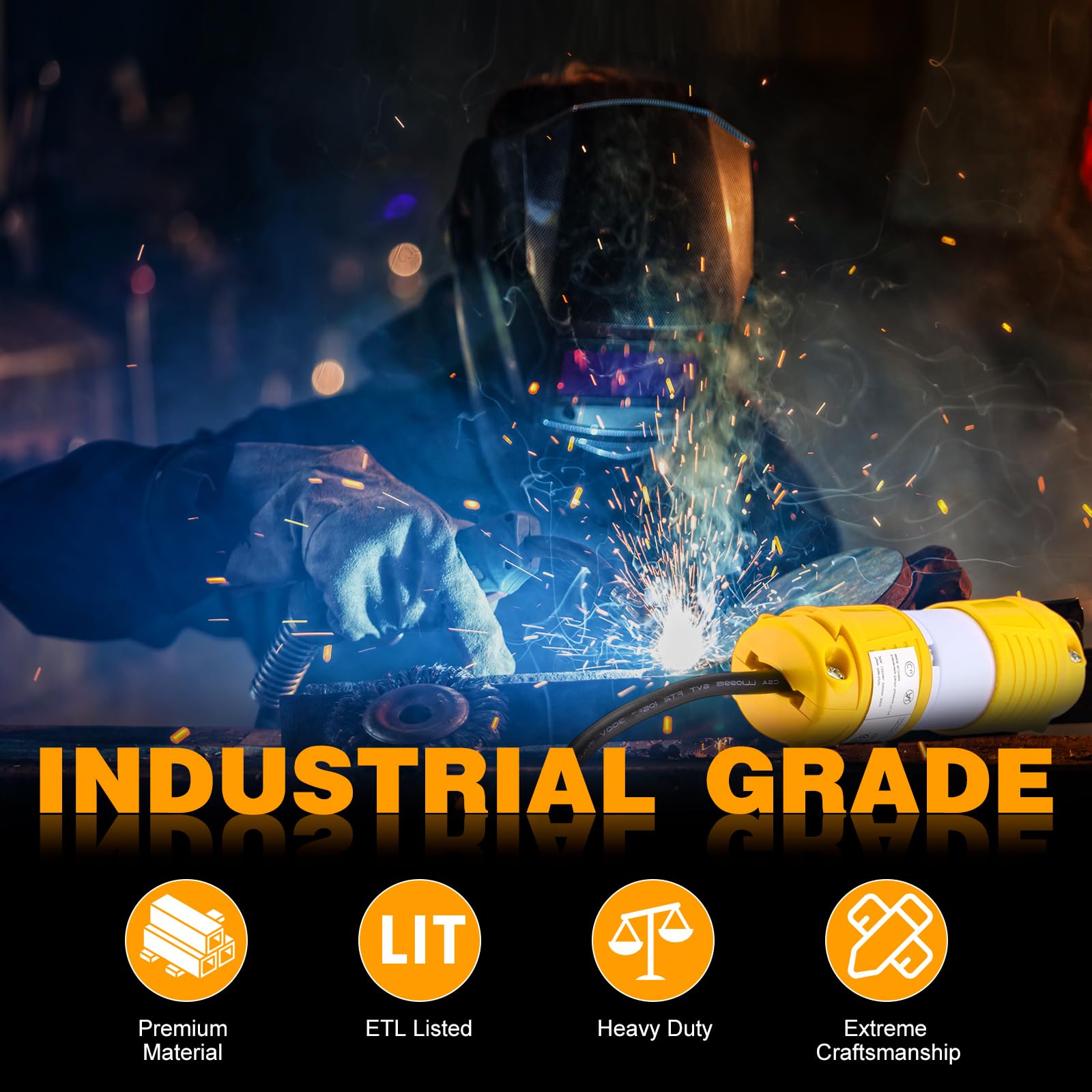 Tellegloww 2 Pcs 20amp Female Welder 5-20P Plug & 5-20R Receptacle RV Electrical Campers 3 Prong 125V Universal Plug and Receptacle with Easy Unplug Design, ETL Listed(Yellow)