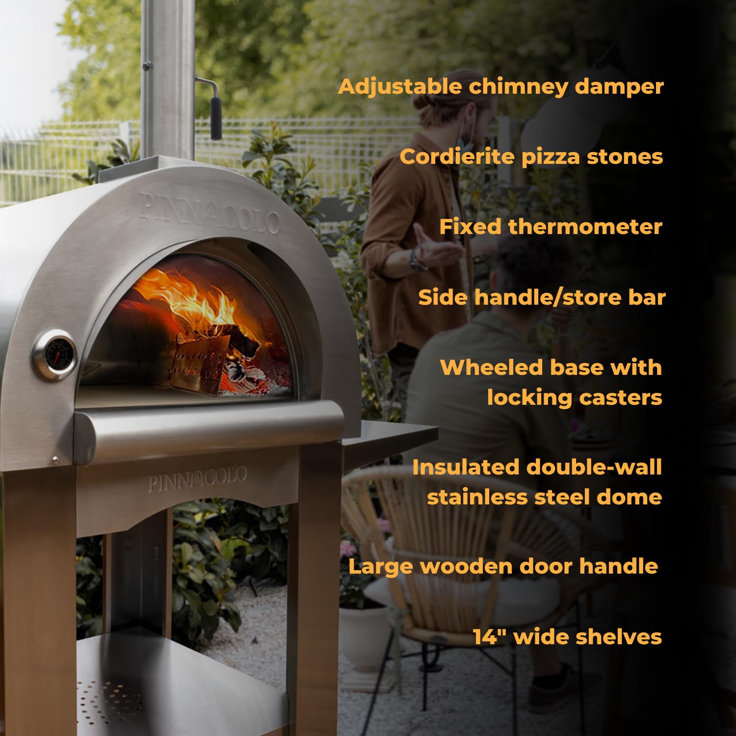 Portable and Versatile - The wheeled base with locking casters and a complete selection of tools make the oven perfect for outdoor cooking and entertaining