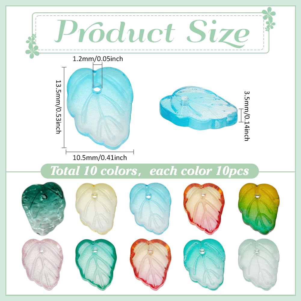 You Will Get: 100pcs of glass leaf pendants, 10 colors, 10pcs/color. Each pendant is about 13.5×10.5×3.5mm, 1.2mm in hole. The quantity is enough for your daily projects, and the ten-color set allows for diverse combinations, enabling you to create unique jewelry pieces that match your style and preferences