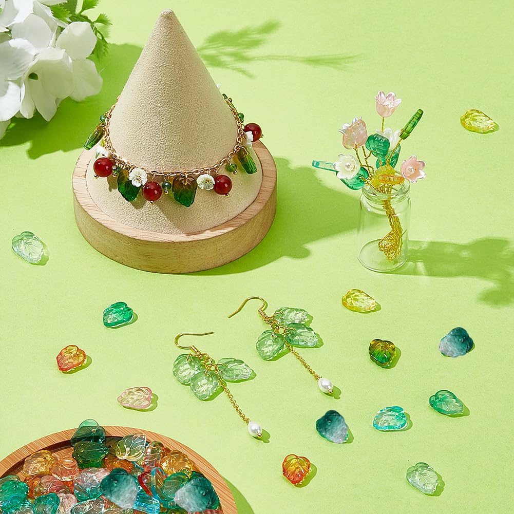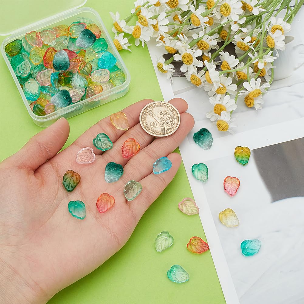 Captivating Leaf Charms: Crafted in vivid leaf shapes with a two-color design and the transparent effect of the glass, these charms are truly remarkable and eye-catching. The colors blend seamlessly, just like the color change of leaves in nature, creating a dreamy and harmonious color effect