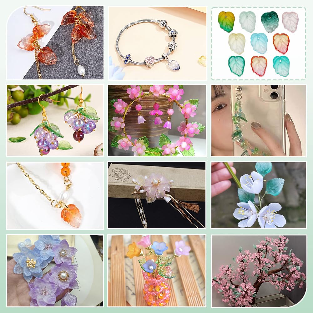 Versatile Styles: Green and blue leaf pendants, with simple wire or chain, create a natural and fresh style. Pink glass leaf charms, paired with a soft-colored bow, create a romantic look. The glass leaf charms in green and yellow, reminiscent of antique jewelry, can be part of a vintage-inspired design