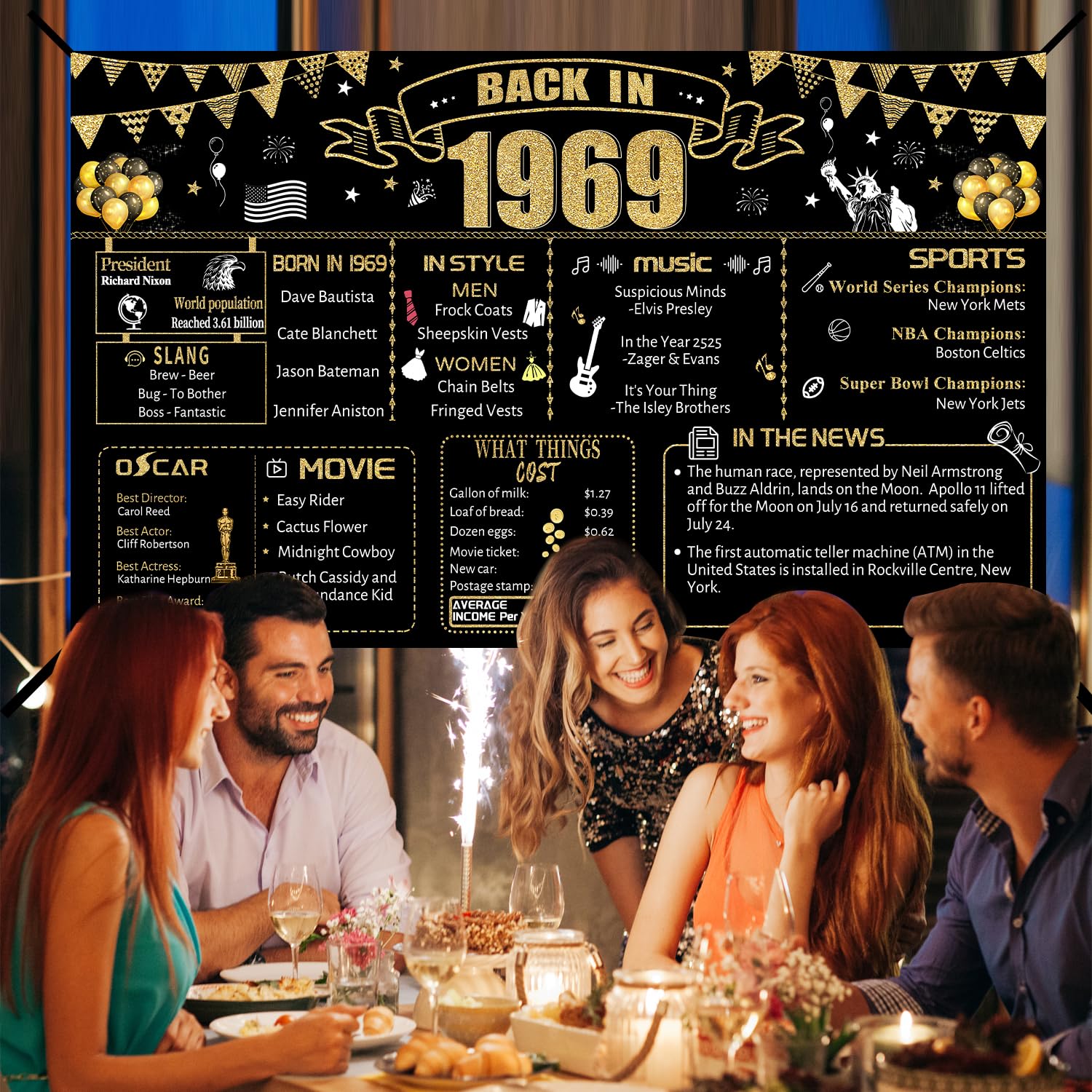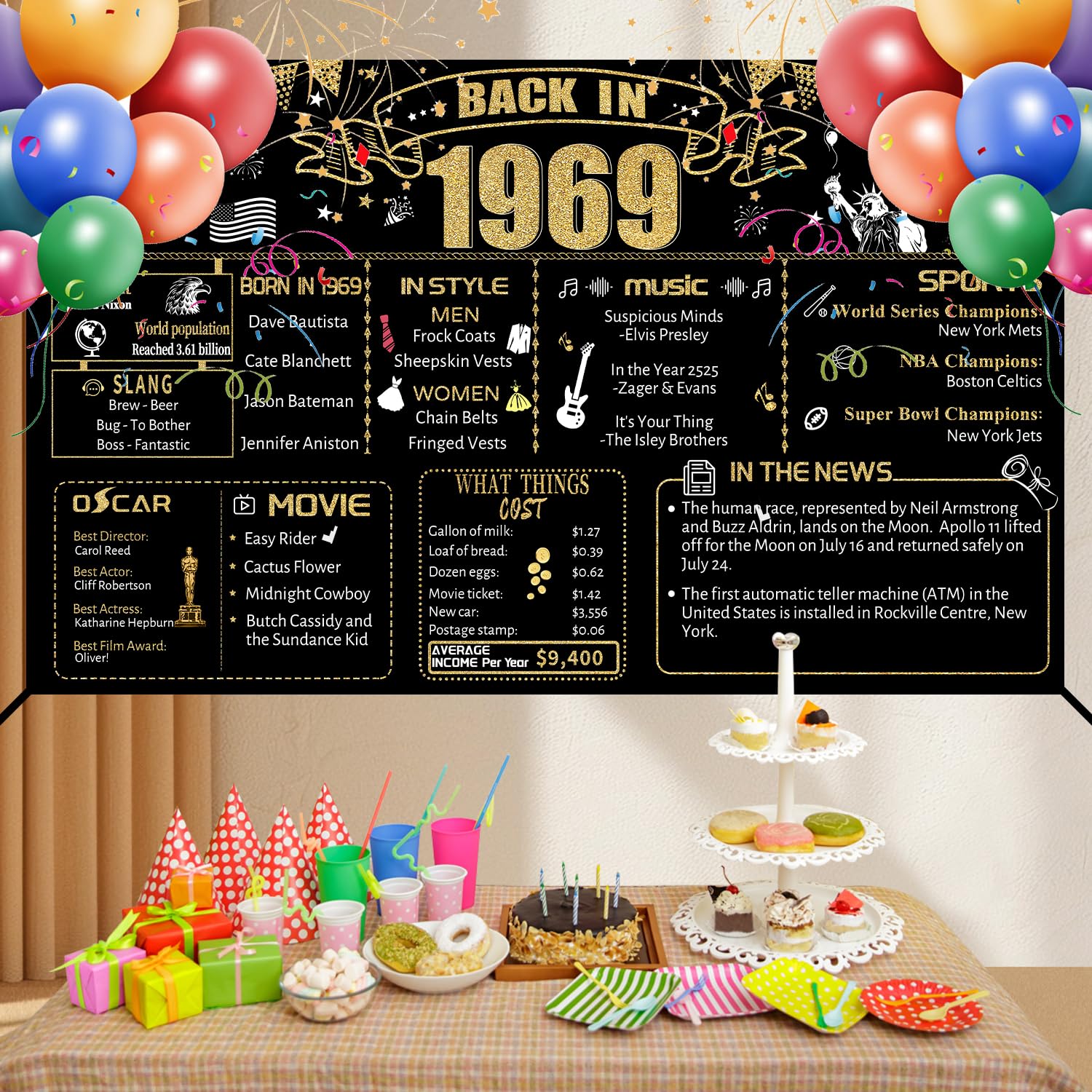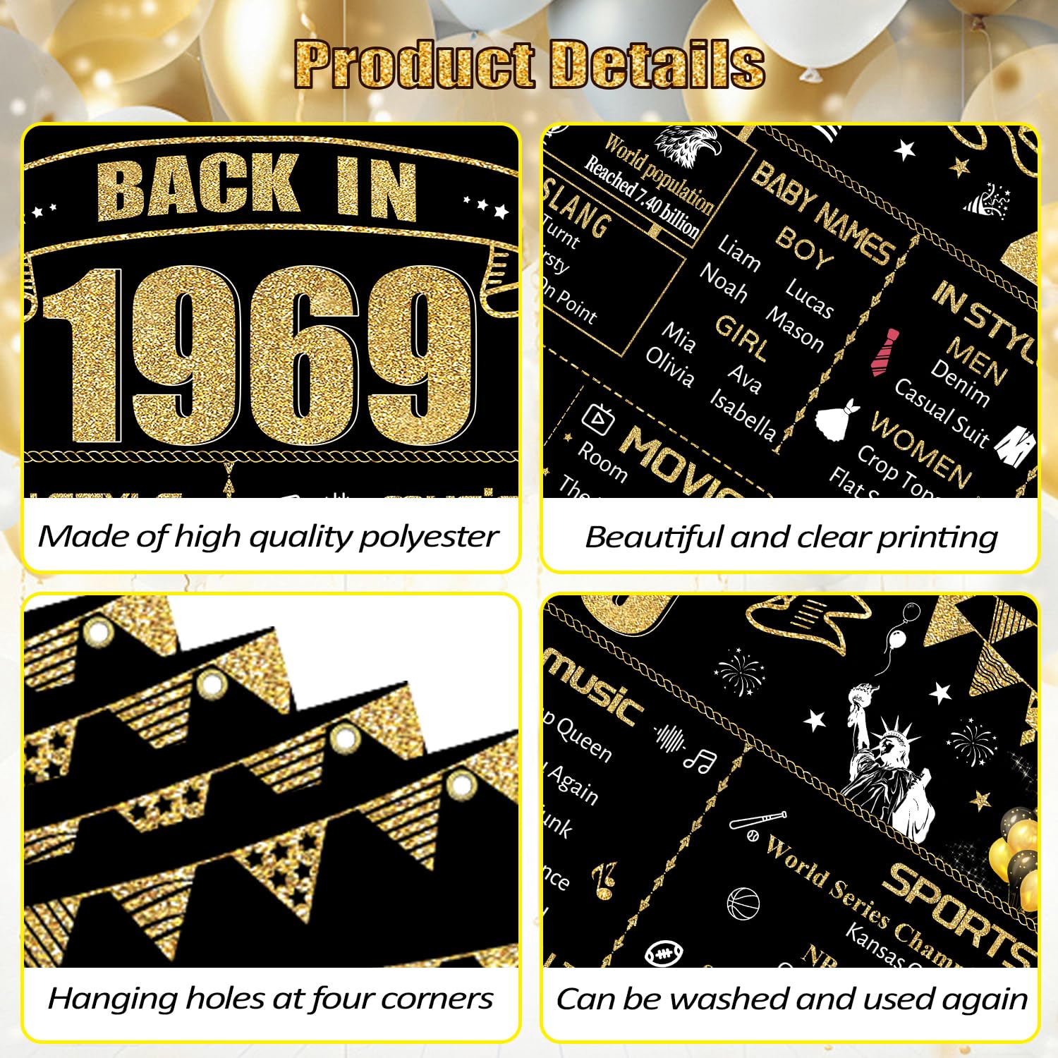 【57th Birthday Decorations】The 1969 birthday banner size is 71 x 43.3 in inches, which is very suitable as a birthday party background for wife husband it is the best choice for your birthday decorations.