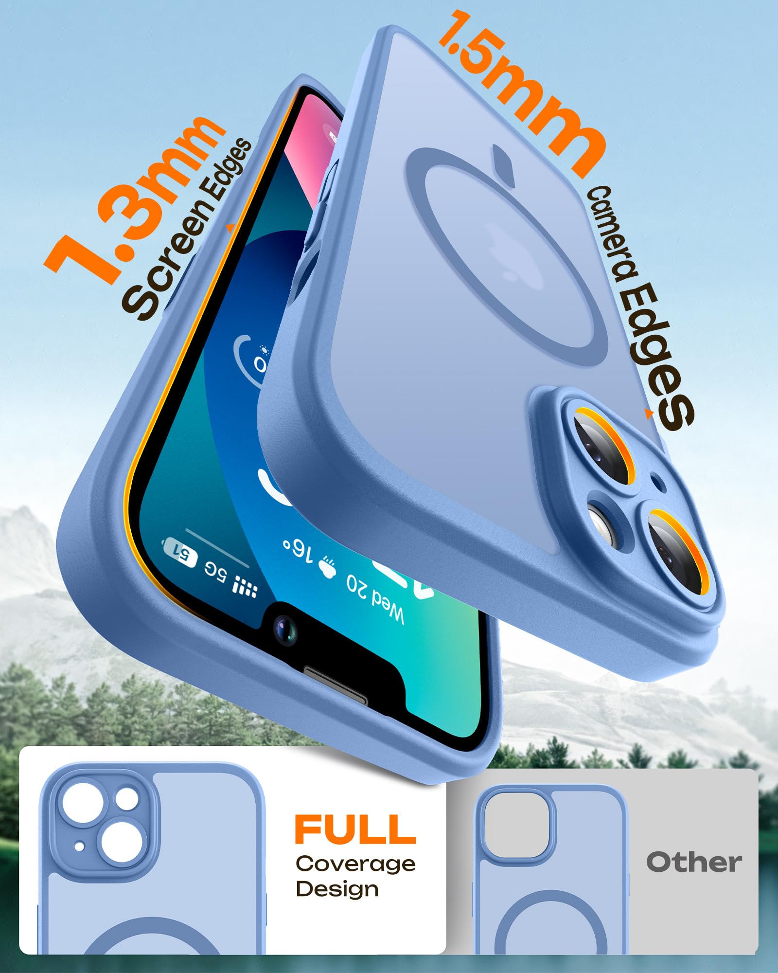 [Grade Drop Protection]: This 13 shockproof protective case is made with TPU cushioning with a four-layer cushioning structure, embedded with 360° airbags inside, for iPhone 13 case protective provides excellent protection to your phone from up to 13 FT drop; The 1.4mm screen bezels and raised 0.88mm innovate an precision camera hole lips protect your device from impact and scratches.