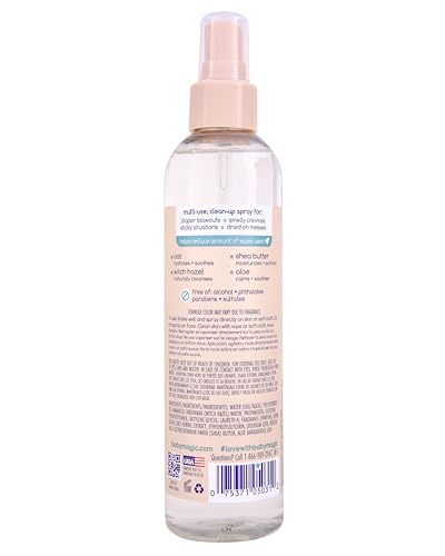Baby Magic Soothing Clean-Up Spray offers quick, gentle cleansing for any mess, from dried-on sticky situations to diaper blowouts, without the need for wipes or water. This multi-use spray was specially developed to calm and moisturize the skin. It’s a rinse-free cleanser that can be used all over the body, as well as on the face and bum. Formulated with nourishing and cleansing ingredients like oat, shea butter, witch hazel, and aloe, it leaves behind the comforting scent of vanilla and oat. Made with witch hazel, it naturally cleanses the skin. Gentle enough for everyday use, this cleanser helps reduce the need for wipes and is perfect for on-the-go cleansing for both baby and family. To use: Shake well and spray directly on skin or soft cloth. Do not spray on face. Clean skin with wipe or soft cloth. Use as needed.