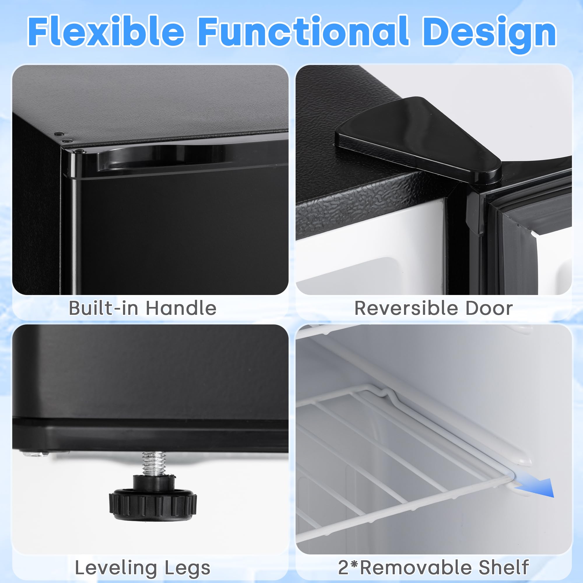Reversible Door & Adjustable Feet: The reversible single door can switch between left and right opening, adapting to any room layout. Adjustable feet ensure stability on uneven floors, making this portable freezer ideal for apartments, dorms, or RVs. The built-in handle adds convenience, while the sleek black finish blends with modern decor.