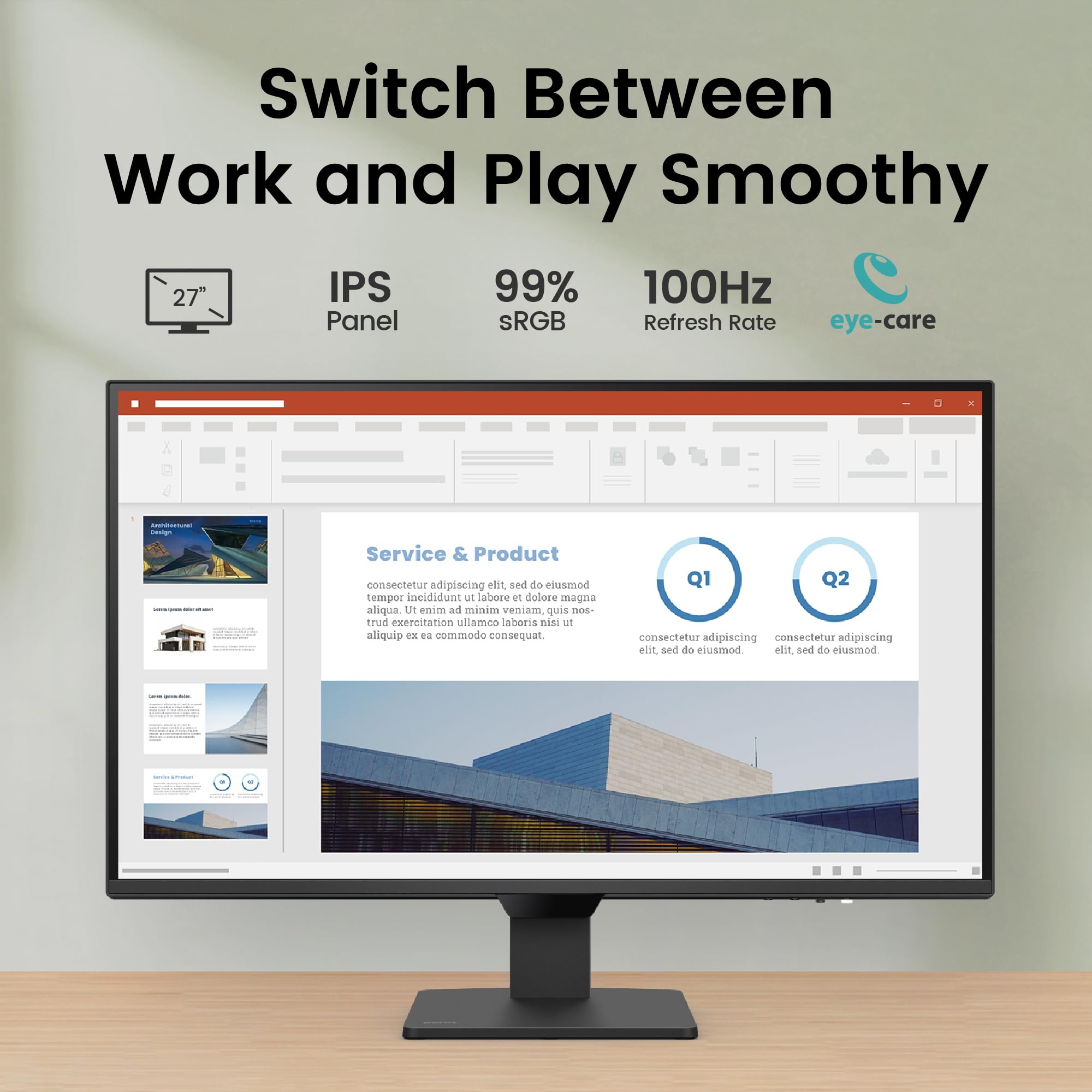 The GW2790Q is a 2K QHD monitor that inspires efficiency and possibilities of flexible lifestyle requirements. With the GW2790Q, effortlessly switch between work and entertainment devices with a single click, relishing a silky-smooth viewing experience at 100Hz refresh rate. Tailored coding mode ensures readability and efficiency, while Eye-Care technology and compatible software, Eye-CareU, deliver comfort and protection during extended sessions.