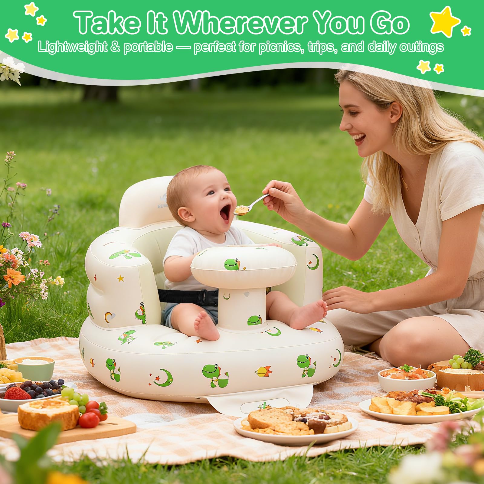 【Practical and Giftable】: Each inflatable baby seat is individually packaged, making it a practical gift for baby baptisms, birthdays, and holidays. It is the perfect choice for parents who are looking for a lightweight, easy-to-clean, and versatile seat