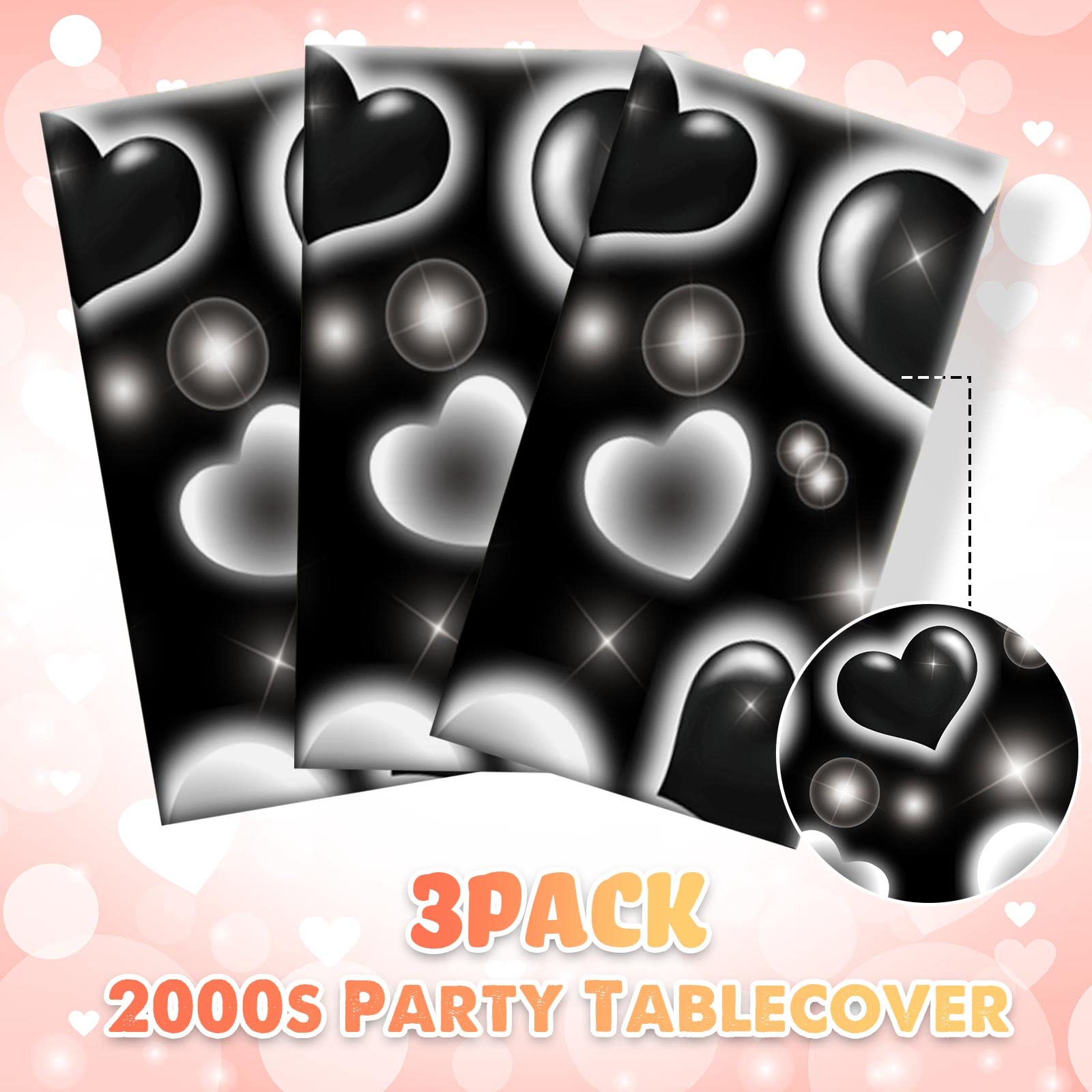 Package Content: the package comes with 3 pieces of 2000s party disposable tablecloths for rectangle tables, the print design with simple hearts, airy elements, retro style, easy to create a vibrant birthday party atmosphere and take you back to the passionate 2000s