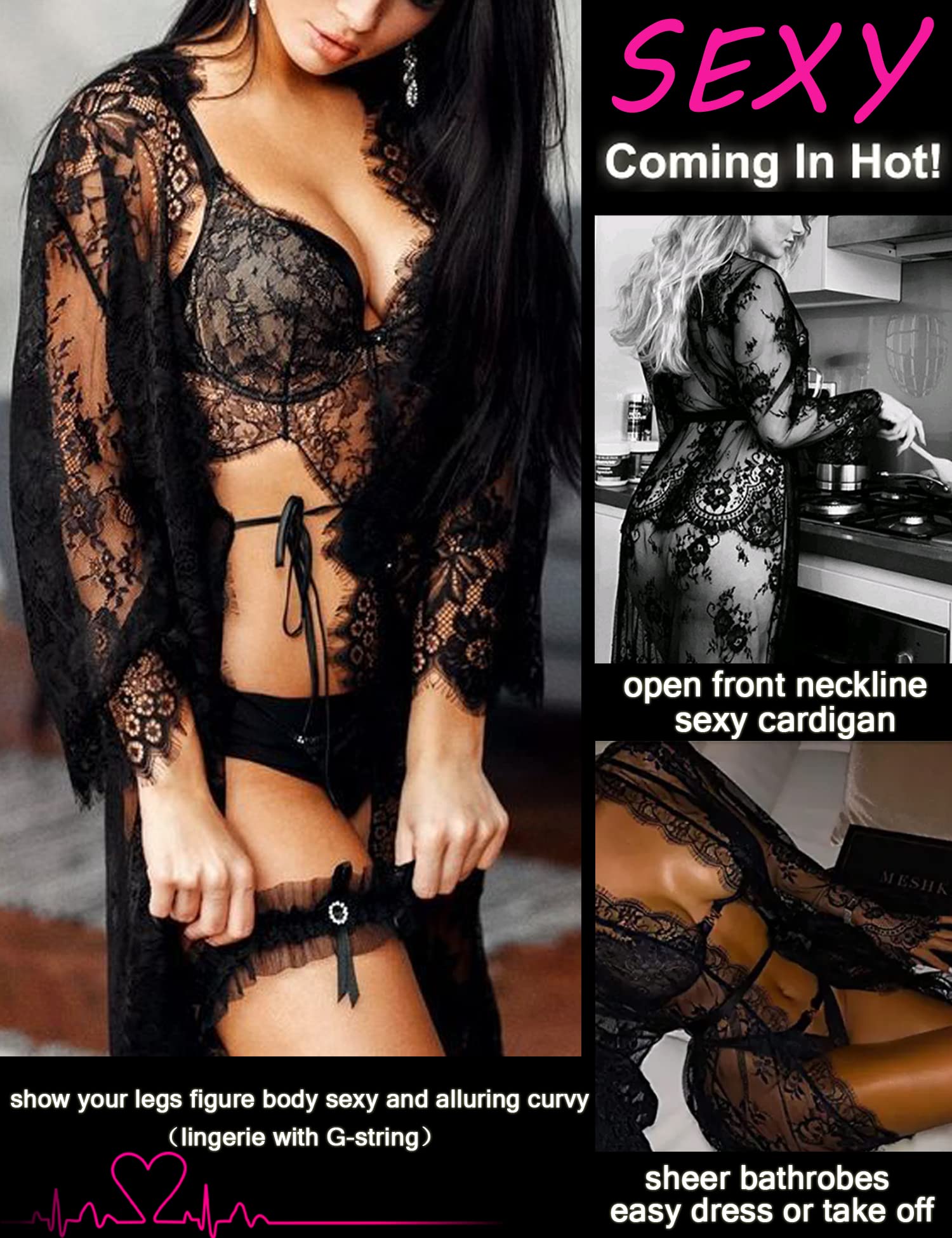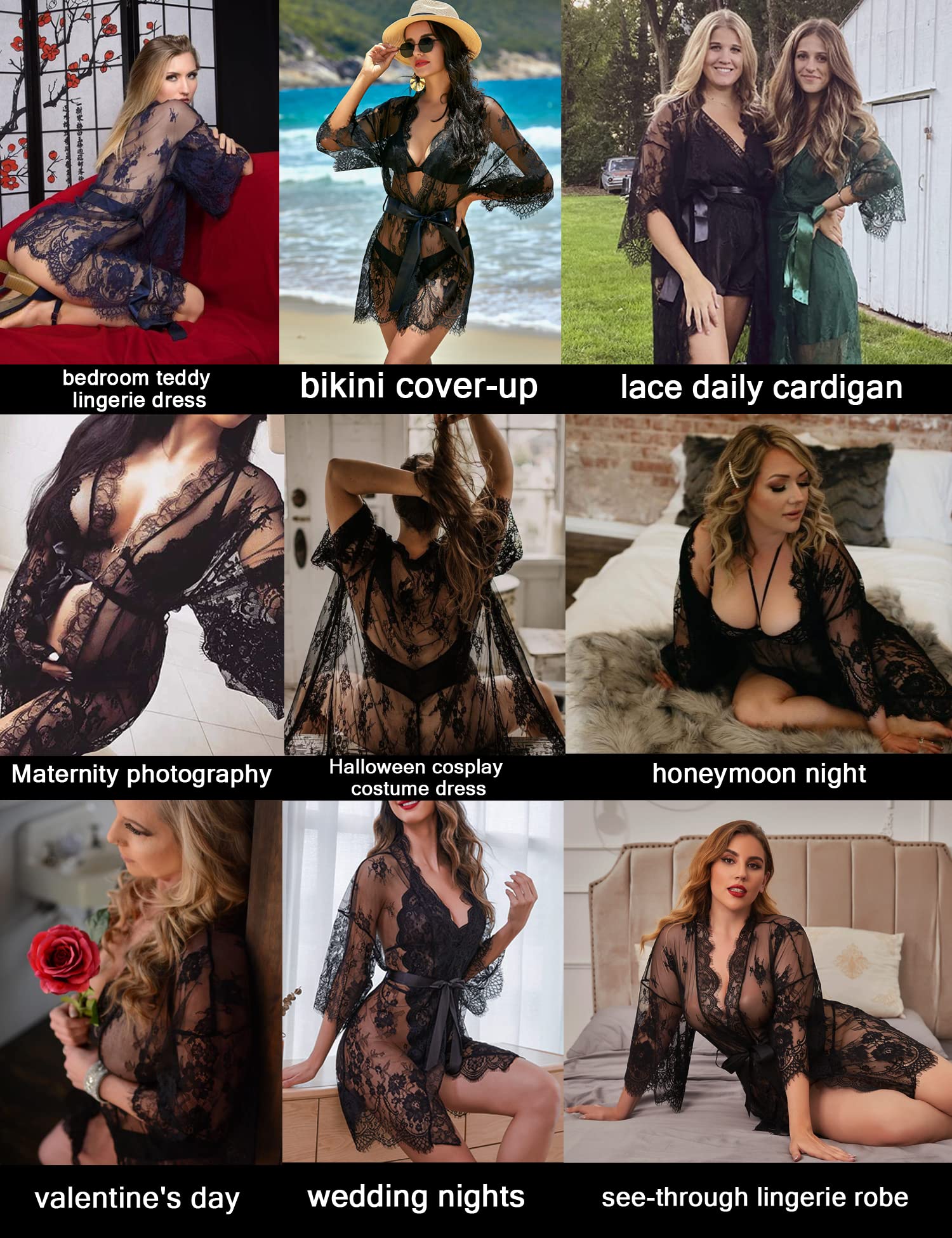 Various Occasion:this lace dress can be wear as your lingerie robe/gown on the night,and you can wear it as summer casual cardigan on the day outside, moreover, you can wear as one bikini cover up dress on the beach for trip