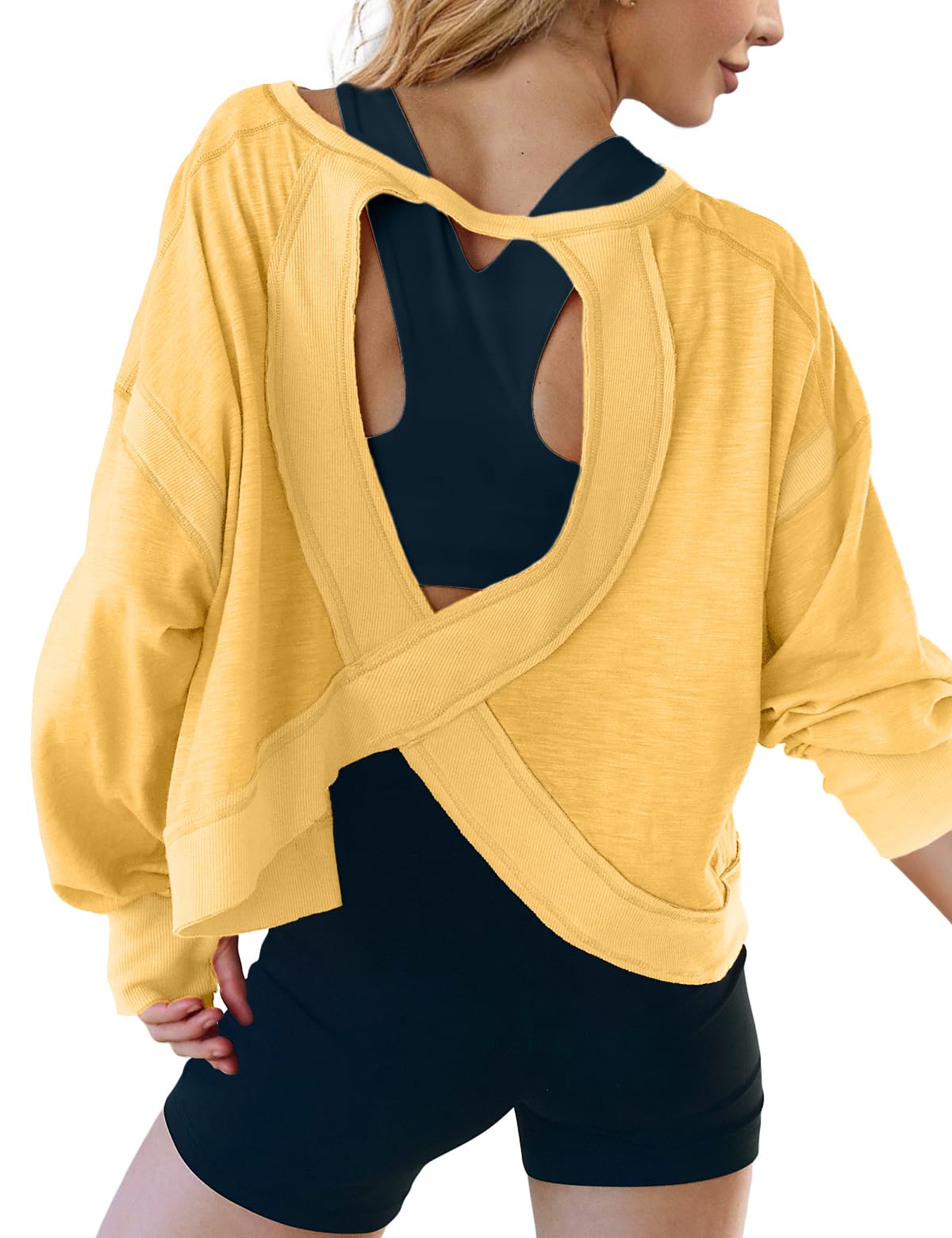 Easy to Style: Pair this open back top with joggers, casual pants, or shorts for a sporty look, or layer it with a tank top, crop top, or vest for a more personalized, chic outfit. It’s a versatile piece for spring, autumn, and summer wardrobes