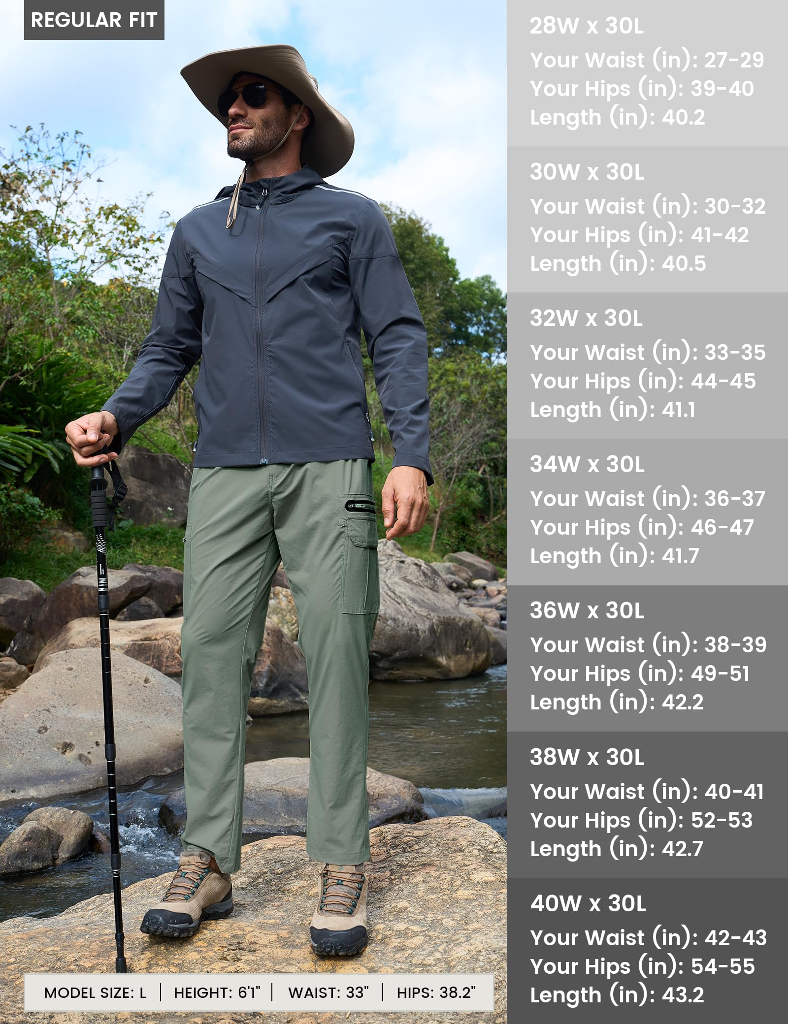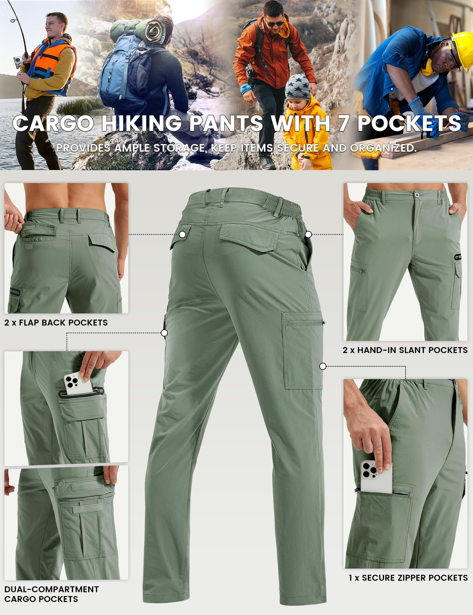 Water Resistant & Sun Protect - Rain or shine, these mens hiking pants repel moisture with DWR coating, plus UPF 50+ sun protection - Stay dry & safe outdoors