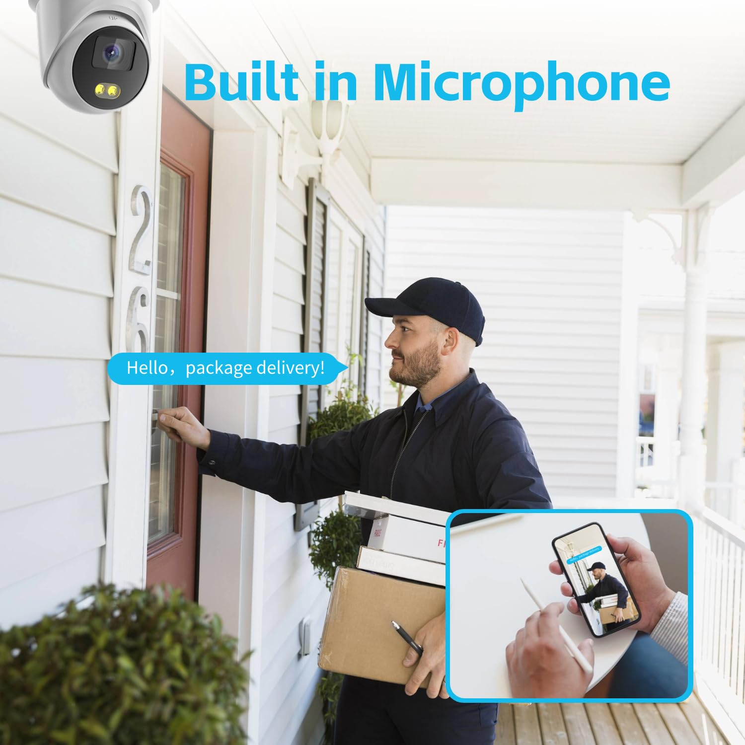 【H.265+/IP67/Built-in Mic】Our Acusense Camera has a efficient H.265+ compression technology, Water and dust resistant (IP67) protects against most weather effects; this 8mp ip camera also has a built-in microphone for real-time audio security.