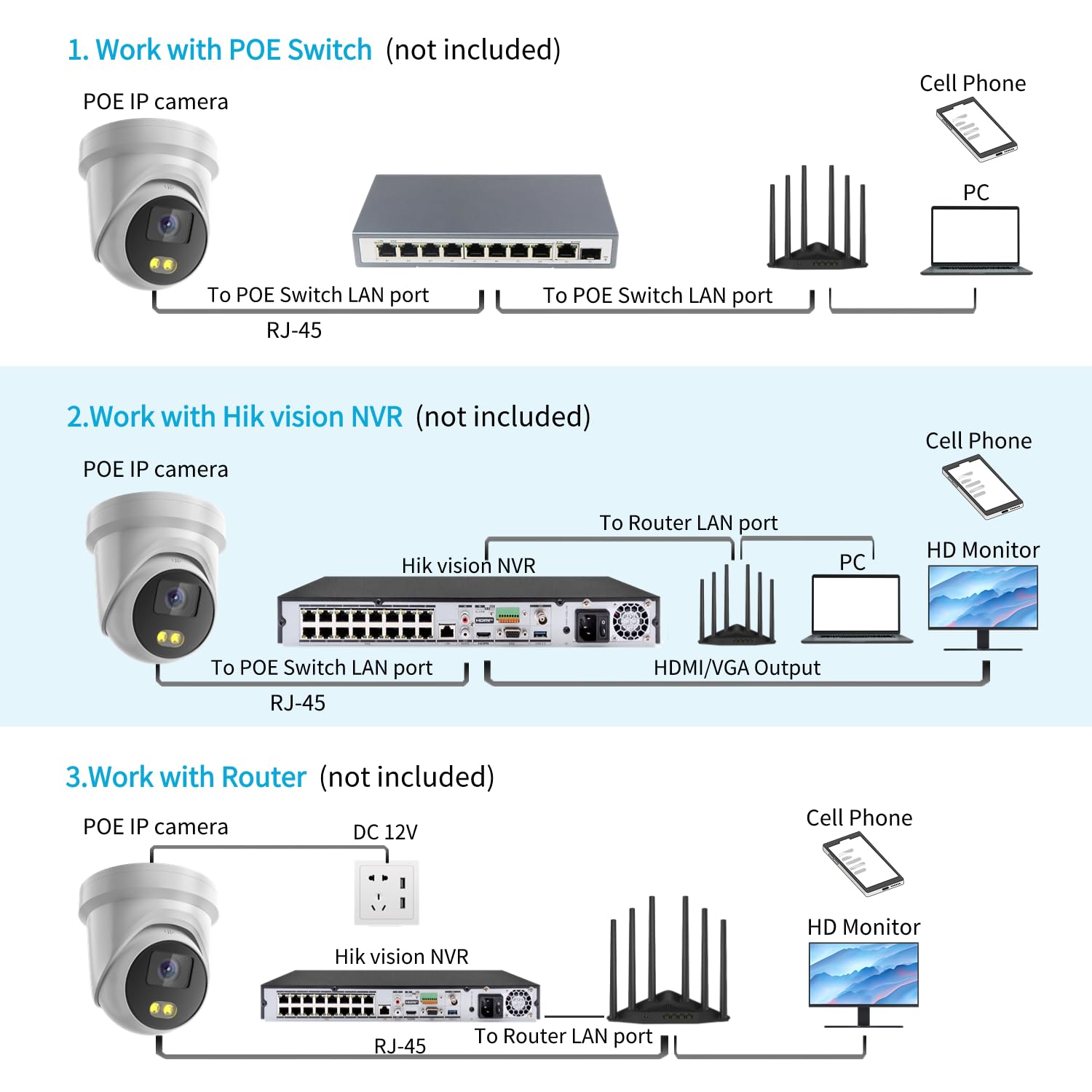 【4K UltraHD Videos】With 2.8mm fixed lens(110°viewing angle),stunning ultra-high quality 4K (8-Megapixel / 3840x2160) resolution, featuring enhanced low light capability with Darkfighter technology, this ip camera details you see around home or store will be reproduced perfectly in live streaming and playback.