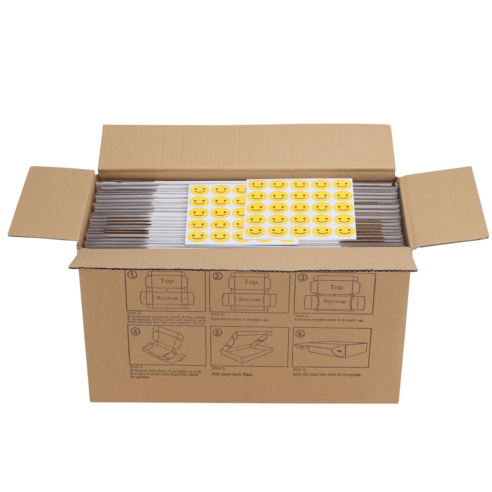 Set of 50 Boxes: There are 50 pack boxes and 50 stickers on the package, storing flat inside a larger carton.