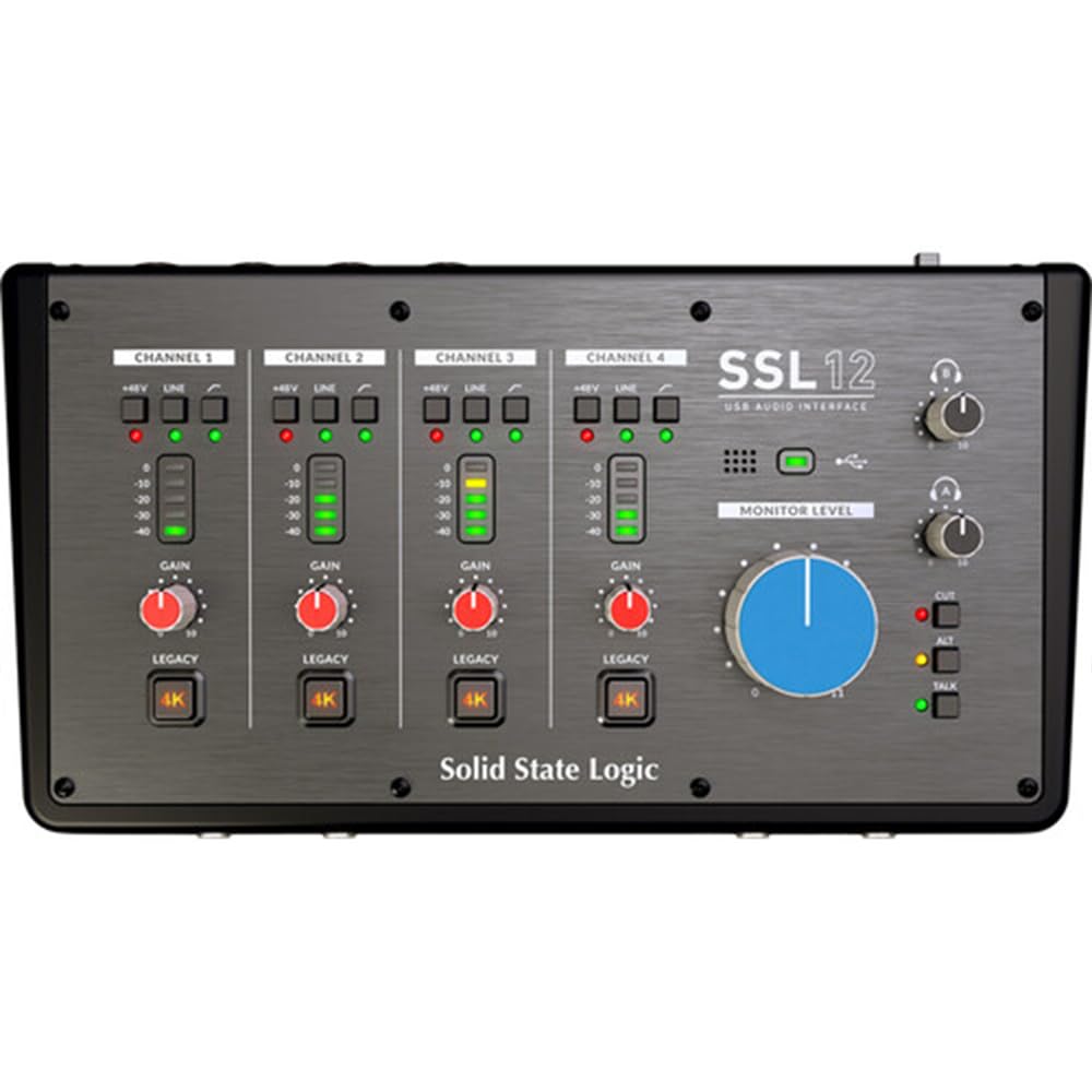 Building upon the success of the Solid State Logic SSL 2 and SSL 2+, the SSL 12 USB Audio Interface is a highly portable 12-in and 8-out, bus-powered interface that delivers all of the professional, studio-grade quality and legendary analog character one would expect from SSL in a compact form factor, ideal for content creators and producers on a tight budget. With pristine 32-bit / 192 kHz AD/DA conversion, you will capture every detail and nuance of your recorded sounds, while ADAT input and intuitive console-style software mixing allows the SSL 12 to be both a studio centerpiece and a portable production hub all at once. Each input channel is arranged vertically like a large-format mixing board, providing 5-segment LED metering, selectable 48V phantom power, mic and line-level operation, and a Legacy 4K switch that adds real analog color enhancement to any input source, inspired by the classic sound of 4000 Series consoles heard on countless hit records. Despite it's compact size, the SSL 12 is loaded with a huge amount of professional studio features normally reserved for high-end rackmount interfaces. SSL has a history of innovation in analog electronics and console design. SSL is always moving forward with analog. Legacy 4K is an all-analog enhancement effect inspired by the character of an SSL 4000 Series console (often referred to as 4K). The cross-platform if operating systems SSL 360 degreesapplication hosts the powerful yet intuitive console-style SSL 12 Mixer, where you can configure and control every aspect of SSL 12. The SSL 12 comes bundled with the SSL Production Pack, a unique collection of SSL and 3rd-party software packed with a selection of must-have virtual instruments, plug-ins, samples, and DAWs (3-Months Access). Bundle with Polsen HPC-A30 Closed-Back Studio Monitor Headphones, 2x 10' MIDI Cable and 2x XLR-XLR Cable What's in the box Solid State Logic SSL 12 USB Audio Interface 1x 726705X1 SSL 12