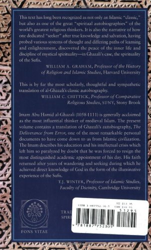 This text has long been recognized as not only an Islamic classic, but also as a great spiritual autobiography of one of the world's greatest religious thinkers. It is the narrative of how one dedicated seeker of true knowledge and salvation, having probed various systems of thought and differing paths of learning and enlightenment, discovered the peace of the inner life and discipline of mystical spirituality.