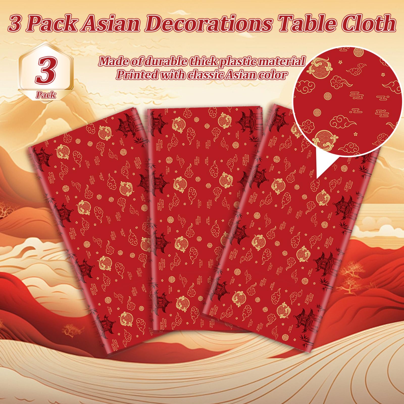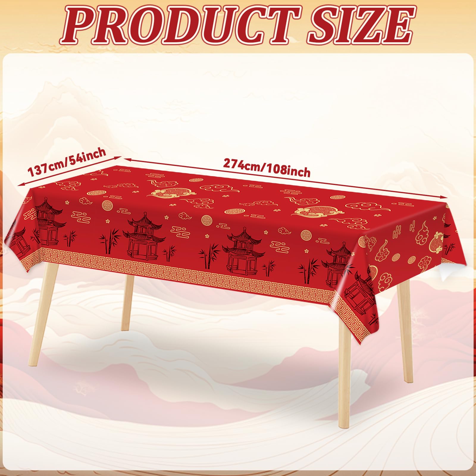 Asian Tablecovers Size: The size of plastic Asian party decorations tablecloth is about 54 x 108 inches/ 137 x 274 cm, can cover up to an 8-foot table. The Asian decorations disposable plastic tablecloth is a great choice for Asian party tablecloth.