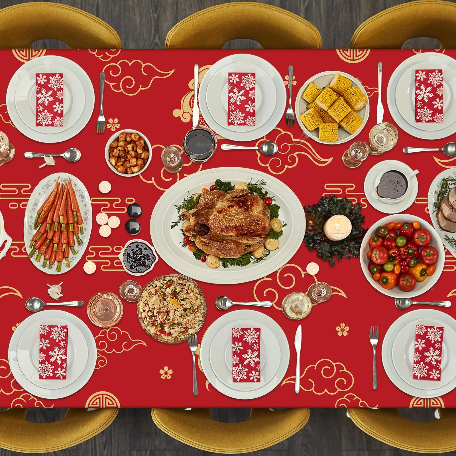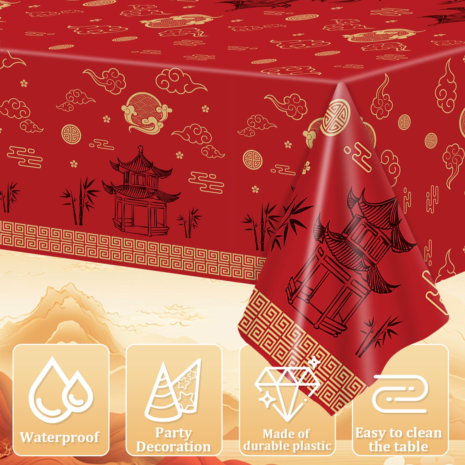 Quick and Easy Clean -Up Chinese Table Cloth: The Chinese new years tablecloth can protect your tables from spills and messes. Roll it up and toss away can help you save more time, no need to worry about cleaning work after party. Great for Chinese decorations supplies, which is an ideal choice for creating wonderful party atmosphere.