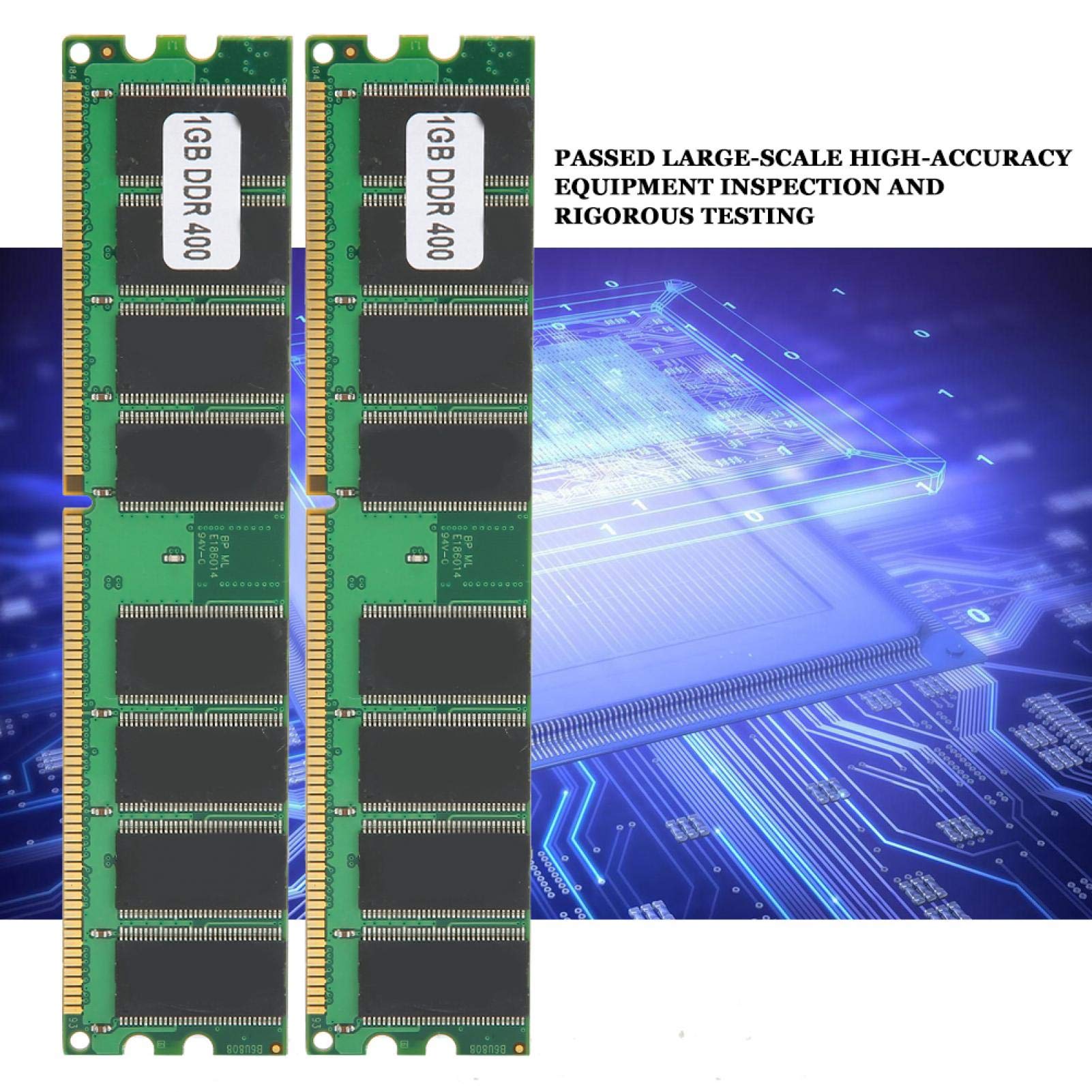 Specification: Item Type: Memory Module Model: DDR Memory Frequency: 400MHZ Memory Capacity: 1GB Compatibility: Full compatible (for Intrl/AMD) Applicable Computer: Desktop Bandwidth: PC-3200 Voltage: 2.6V Pin Number: 184pin Note: 1. The Memory Is Divided Into Memory Card, DDR, DDR2, DDR3 . Please check the following list to know what memory has been installed in your computer and what memory you need to buy. If you don't know which memory is suitable for your computer, please use the software test to see what memory your favorite computer needs. After running the software, look at the " Bandwidth" column of the "SPD" option, and you will see "PCxx00", as follows: PC2100 is DDR 266 memory PC2700 is DDR 333 memory PC3200 is DDR 400 memory PC4200 is DDR2 533 memory PC4300 is DDR2 533 memory PC5300 is DDR2 667 memory PC6400 is DDR2 800 memory PC8500 is DDR3 1066 memory PC10700 is DDR3 1333 memory PC12800 is DDR3 1600 memory The memory DDR, DDR2, and DDR3 are not common to each other, and the sockets are different, and you can't force the overlord to insert it in, so as not to damage the memory and the motherboard, remember! Package List: 2 x Memory Module