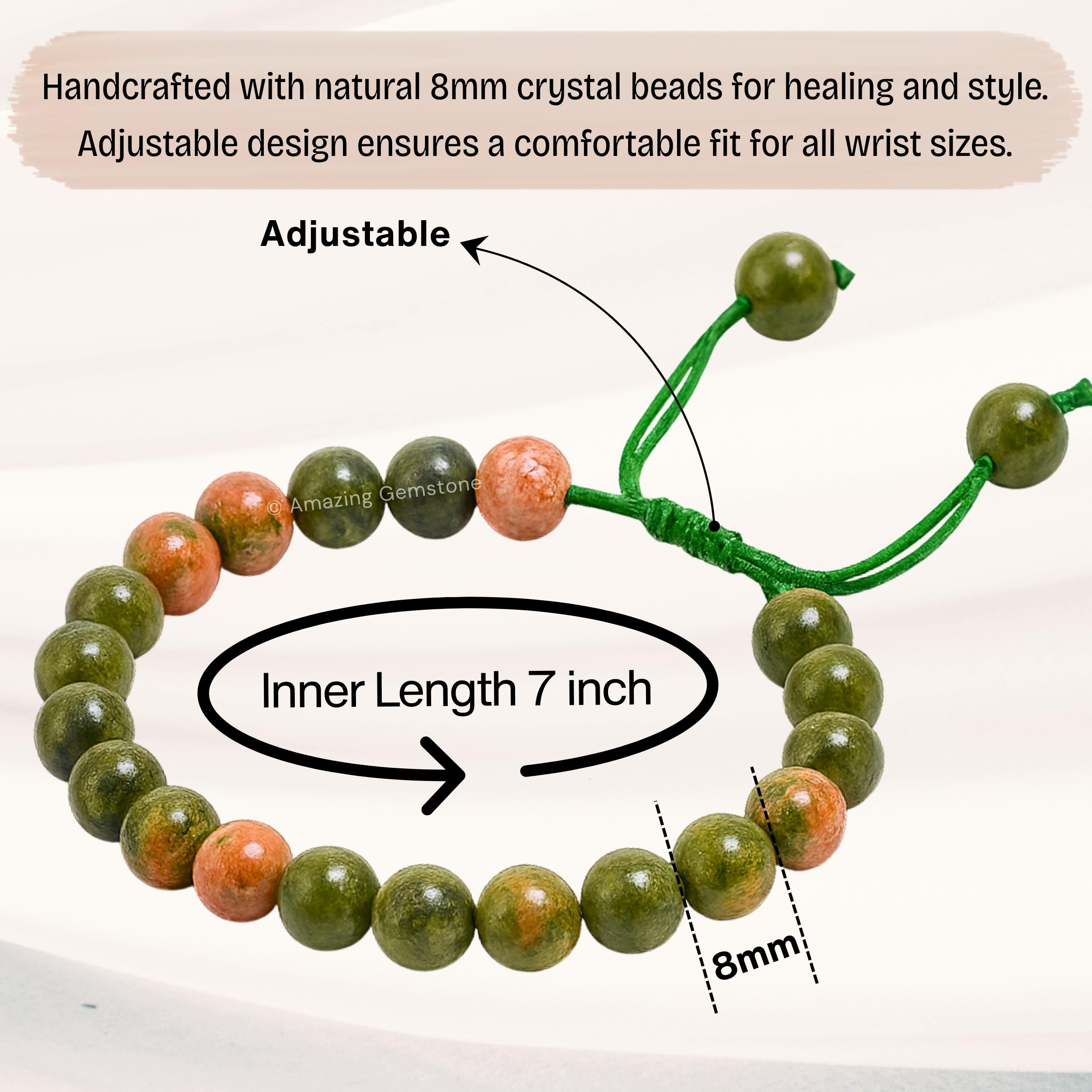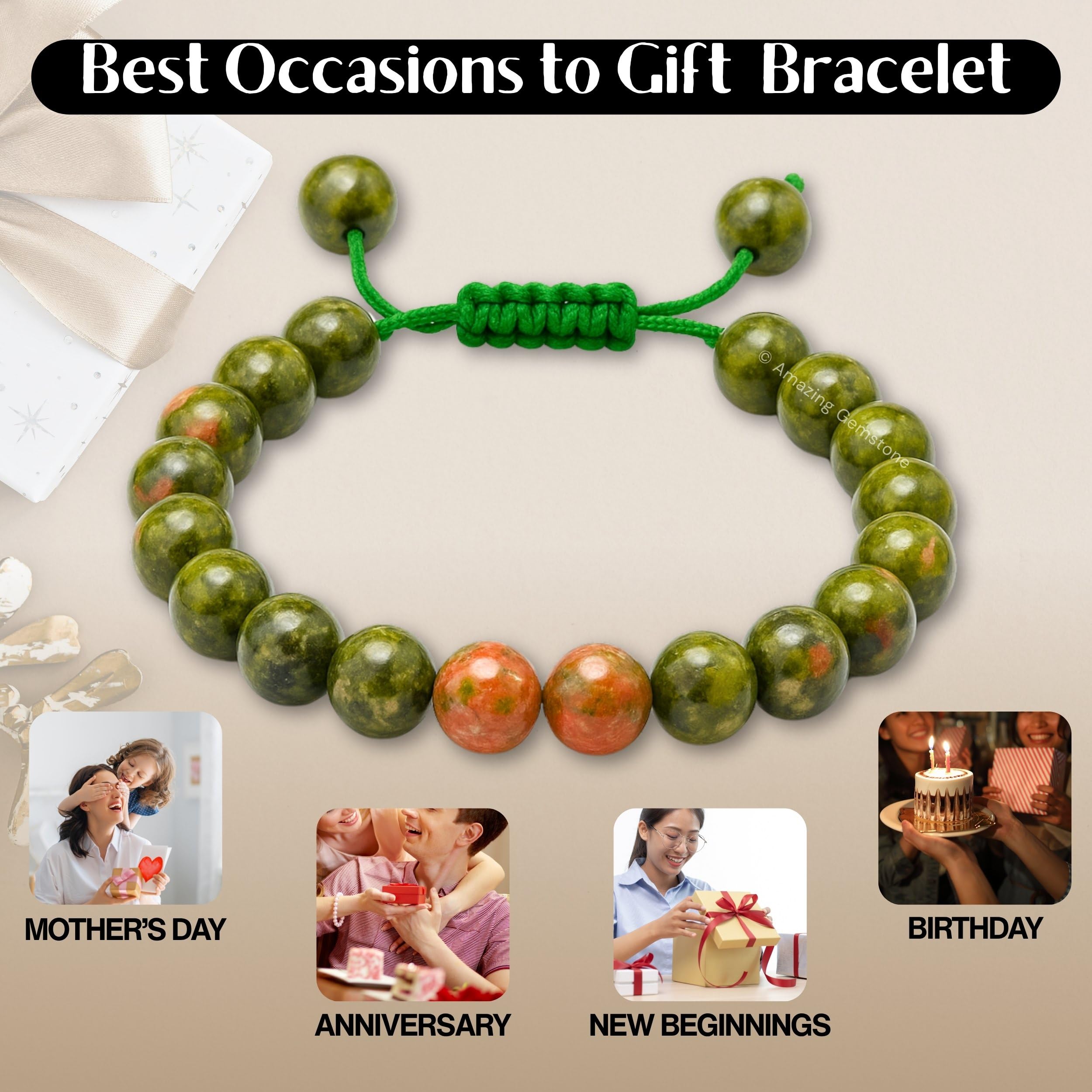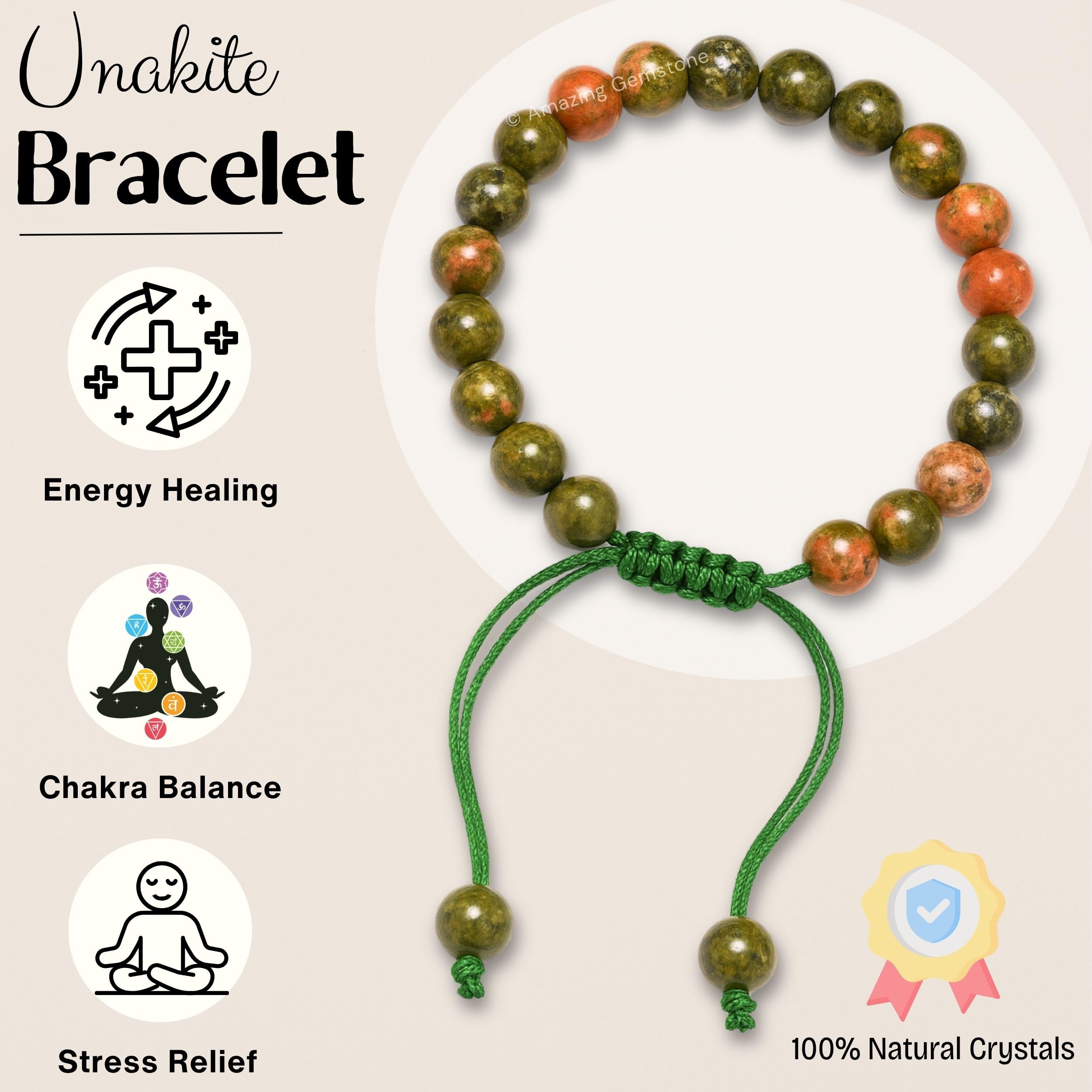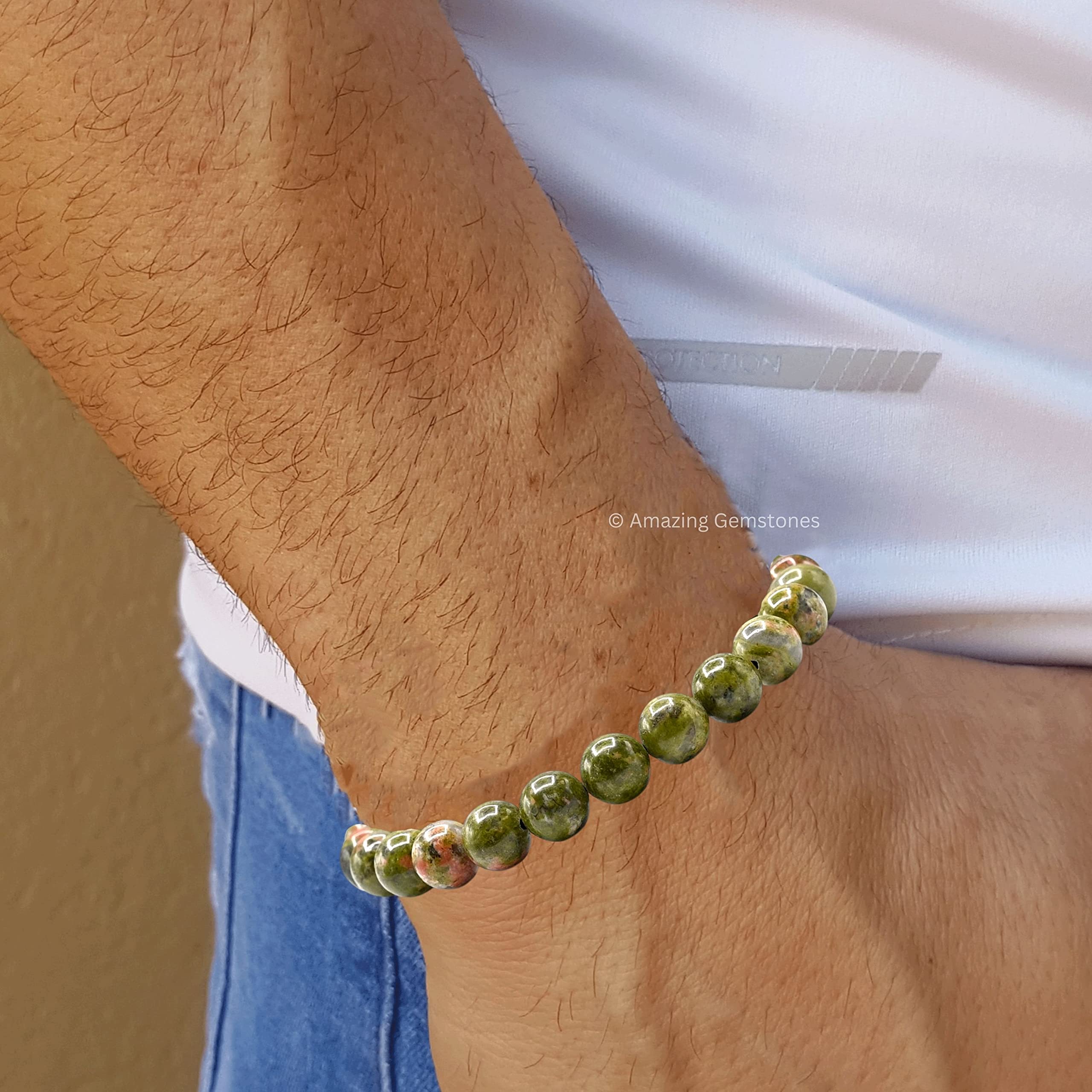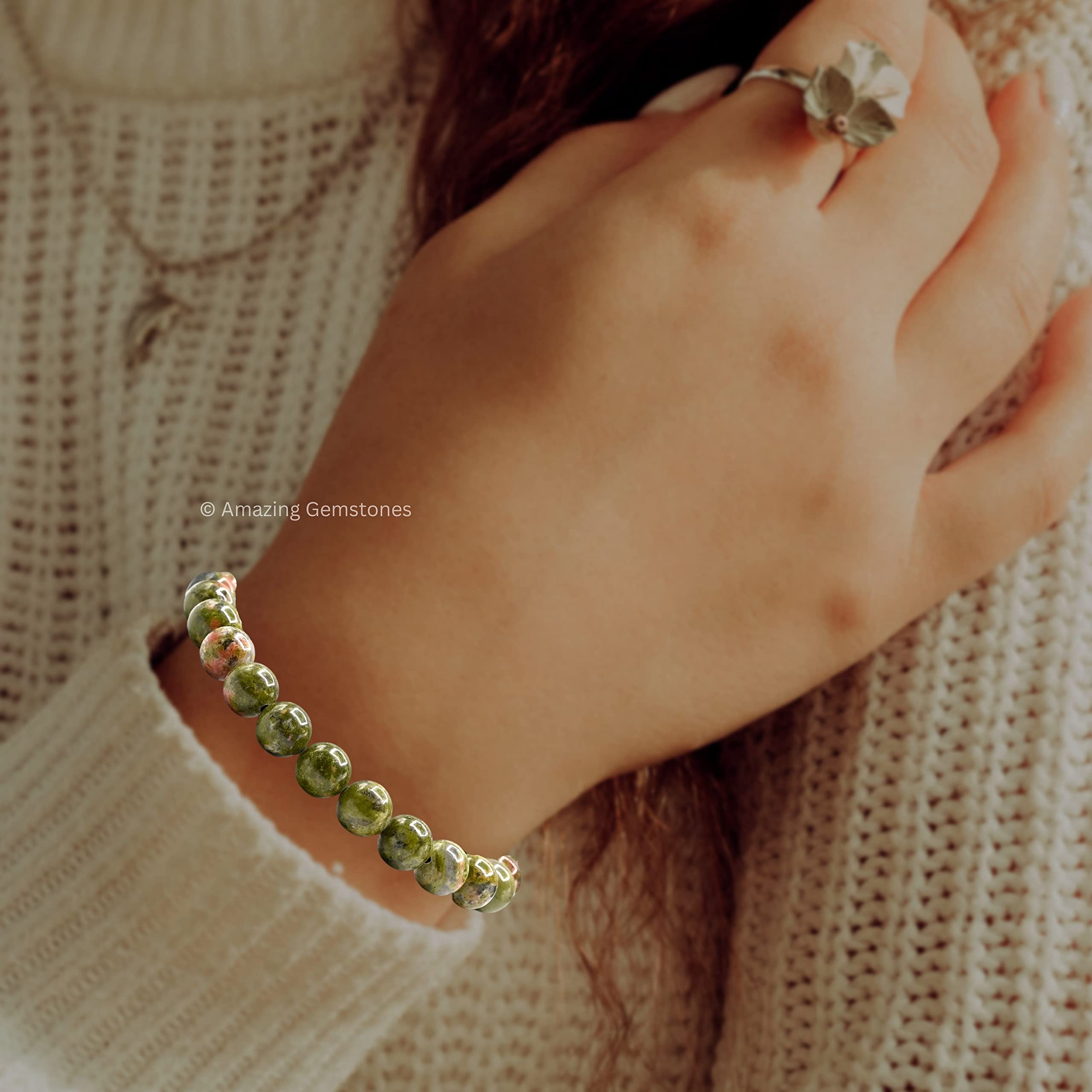 Natural : These Unakite Bracelets are handmade with high quality authentic natural gem stone beads.