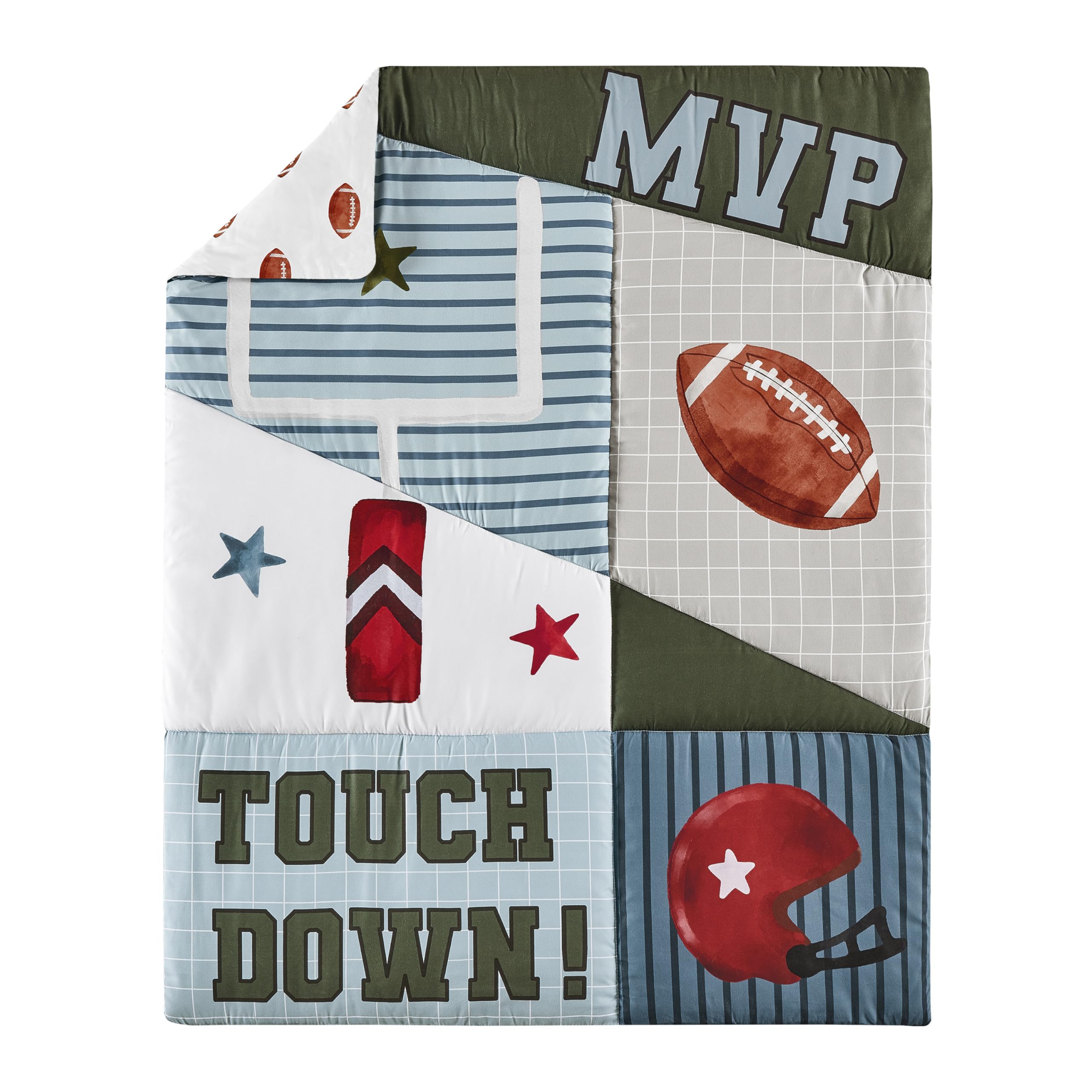 5 Piece Set Includes: (1)Toddler Comforter, (1)Sham, (1)Pillow Case, (1)Flat Sheet, (1)Fitted Sheet