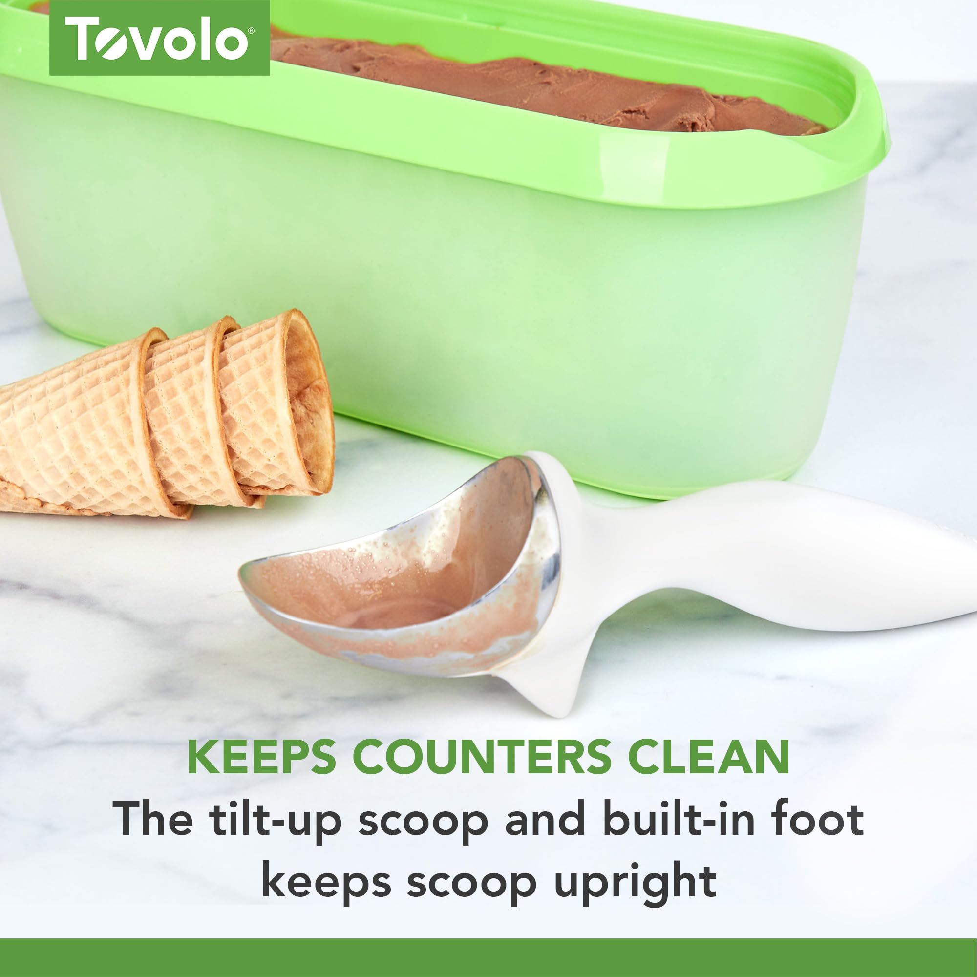 Transform frozen dessert frustration into pure delight with Tovolo's innovative Tilt Up Ice Cream Scoop solving the two biggest scooping challenges in one brilliant design hard ice cream and messy counters. The secret lies in the heat retaining chrome plated zinc alloy of this ice cream scooper that naturally warms from your touch making even the firmest frozen treats scoop smoothly. Meanwhile those clever built in feet keep the scoop elevated when you set it down so drips stay in the bowl not on your surfaces. It's the little details that make a big difference like the perfectly balanced non slip handle that gives you control without strain. This ice cream scooper isn't just another kitchen tool it's your ticket to effortless entertaining and everyday dessert happiness. The White color adds a splash of style while the dishwasher safe construction means cleanup is as easy as scooping. Professional grade materials ensure this heavy duty ice cream scoop keeps performing perfectly year after year. Whether you're a serious home chef or just serious about ice cream this smart tool delivers the results you want. Make every scoop count with Tovolo's blend of innovation and reliability.