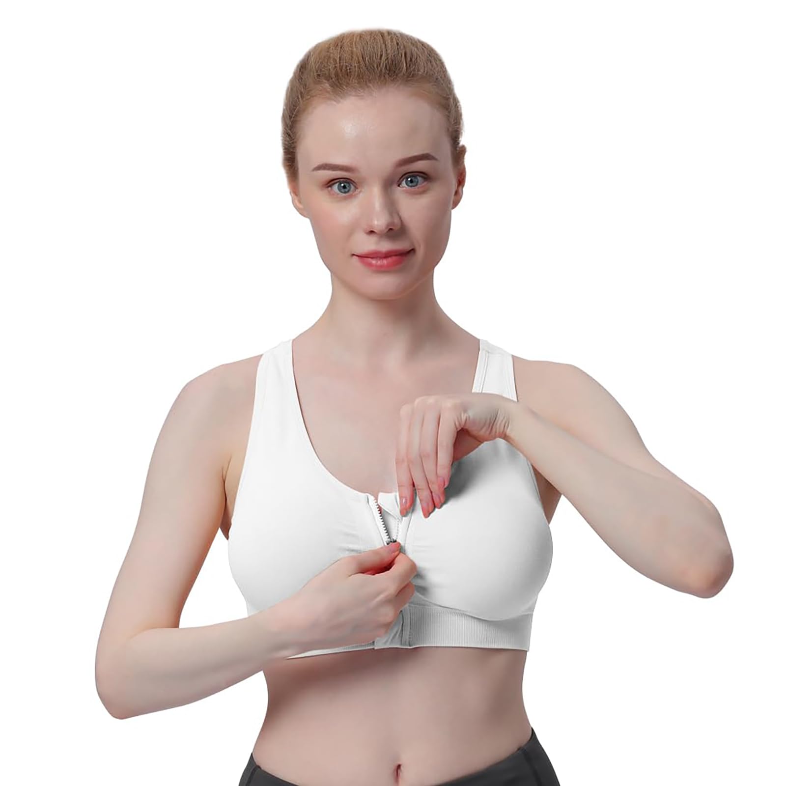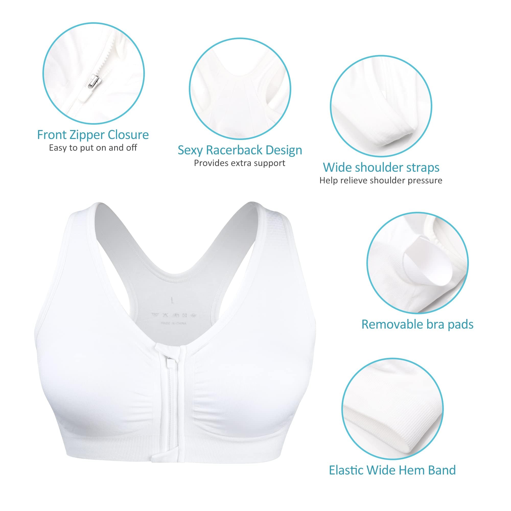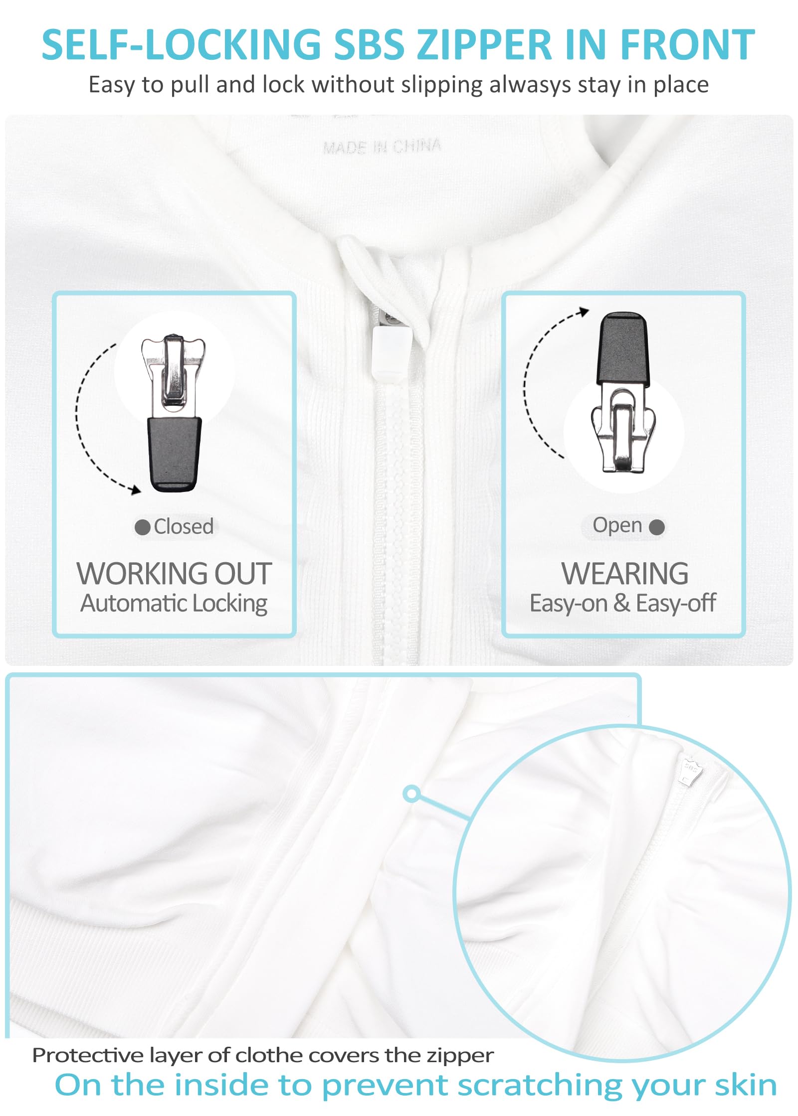 Front zipper closure-Easy to put on and take off with zipper front closure. Anti slide Zipper protect from sliding down when doing exercise. Protective layer of clothe covers the zipper on the inside to prevent scratching your skin