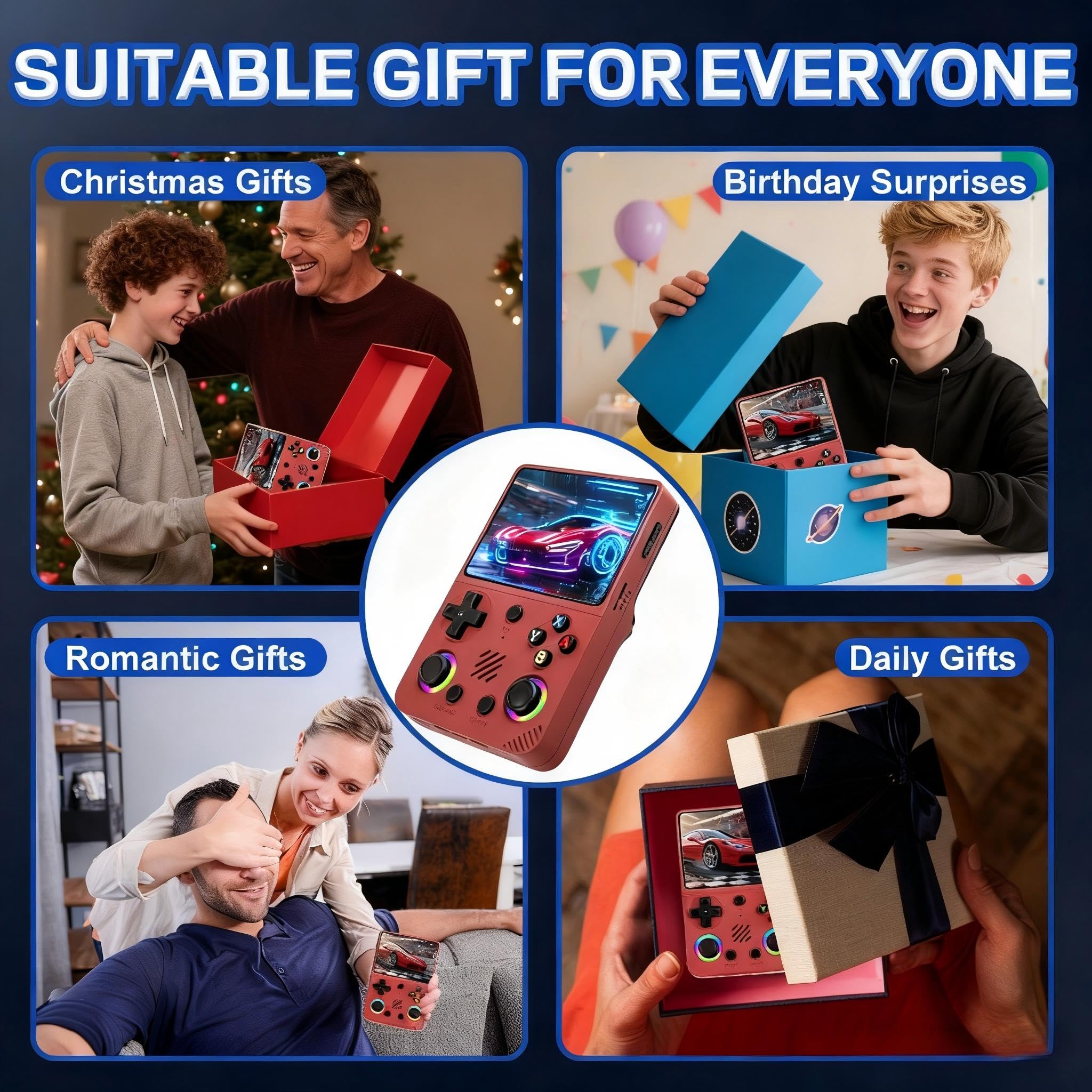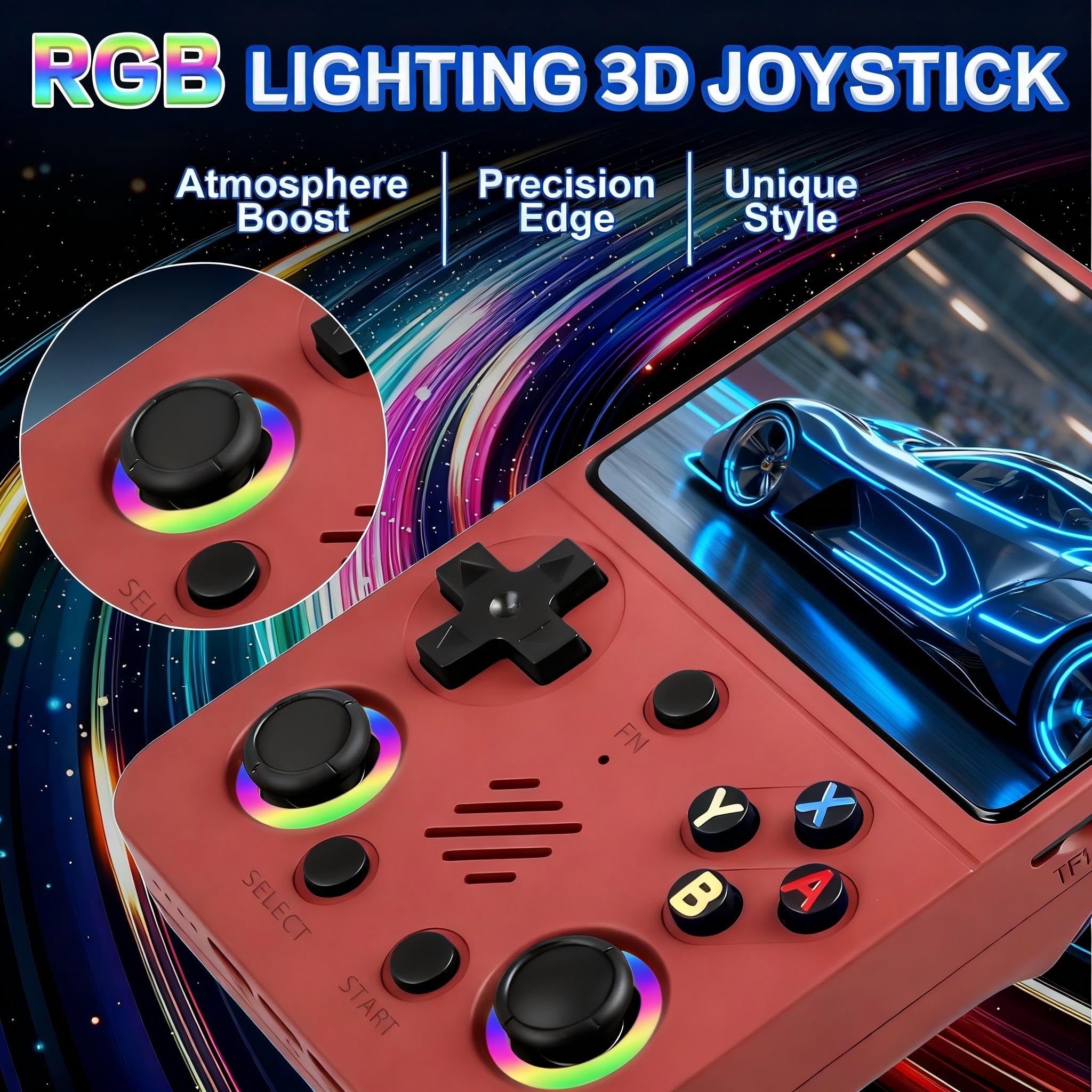 Stylish Design for All:RG36 PRO Retro Handheld Game Console combines vintage, modern and minimalist aesthetics.The matte body is comfortable to hold, featuring both player sentiment and collectible quality. The dual joysticks come with RGB lights. The rare light effects move rhythmically between fingers, instantly igniting the gaming atmosphere. Whether for personal enjoyment or as a gift, the RG36 PRO is a perfect choice for birthdays, Christmas and other festivals