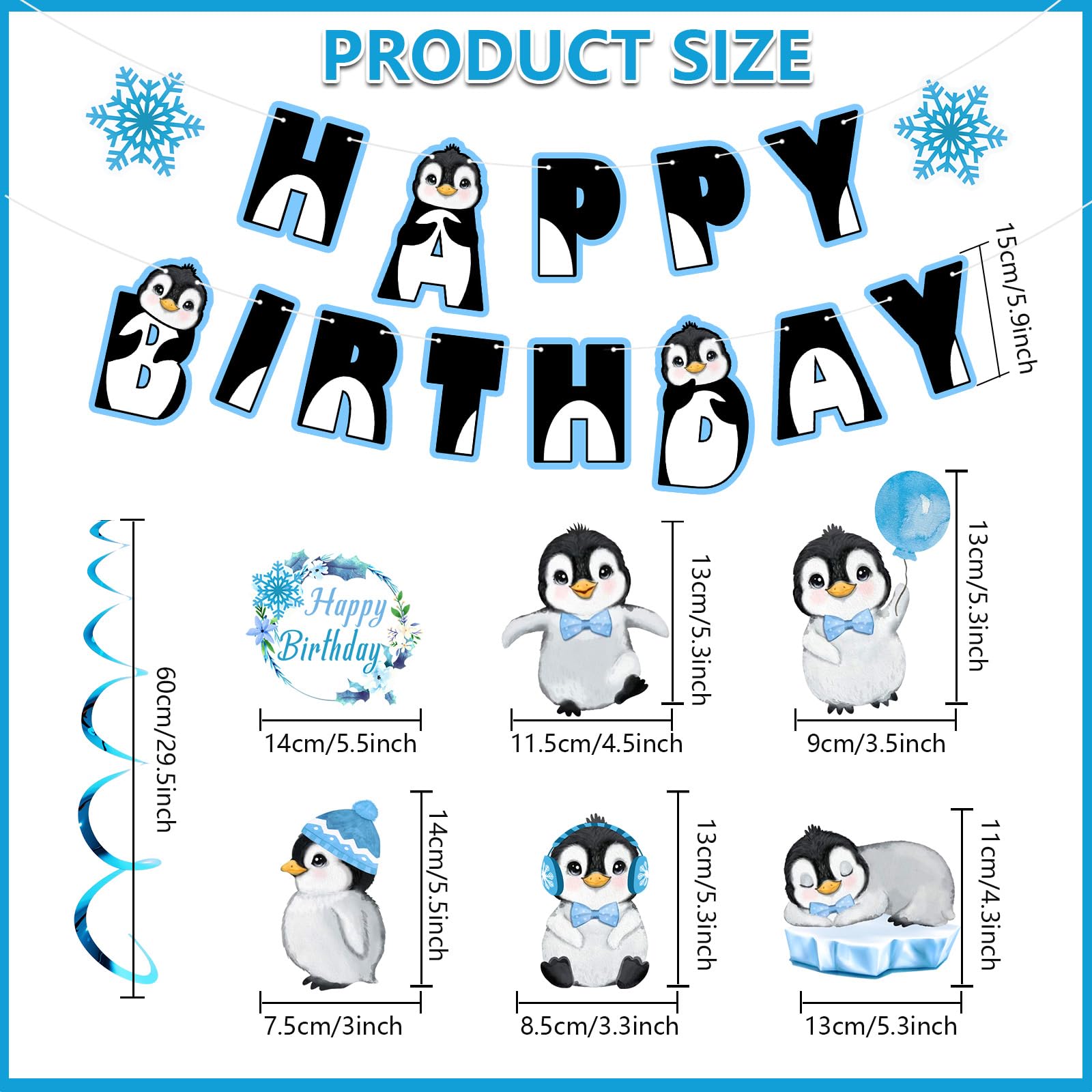 🐧Premium Material: Penguin party birthday banners and streamers are made of good quality cardboard by precised character cutting. Lightweight, durable, well printed, bright and cute. Blue penguin decor are well newly made and full of vivid atmosphere. They are reusable and could be kept as home decorations after party.