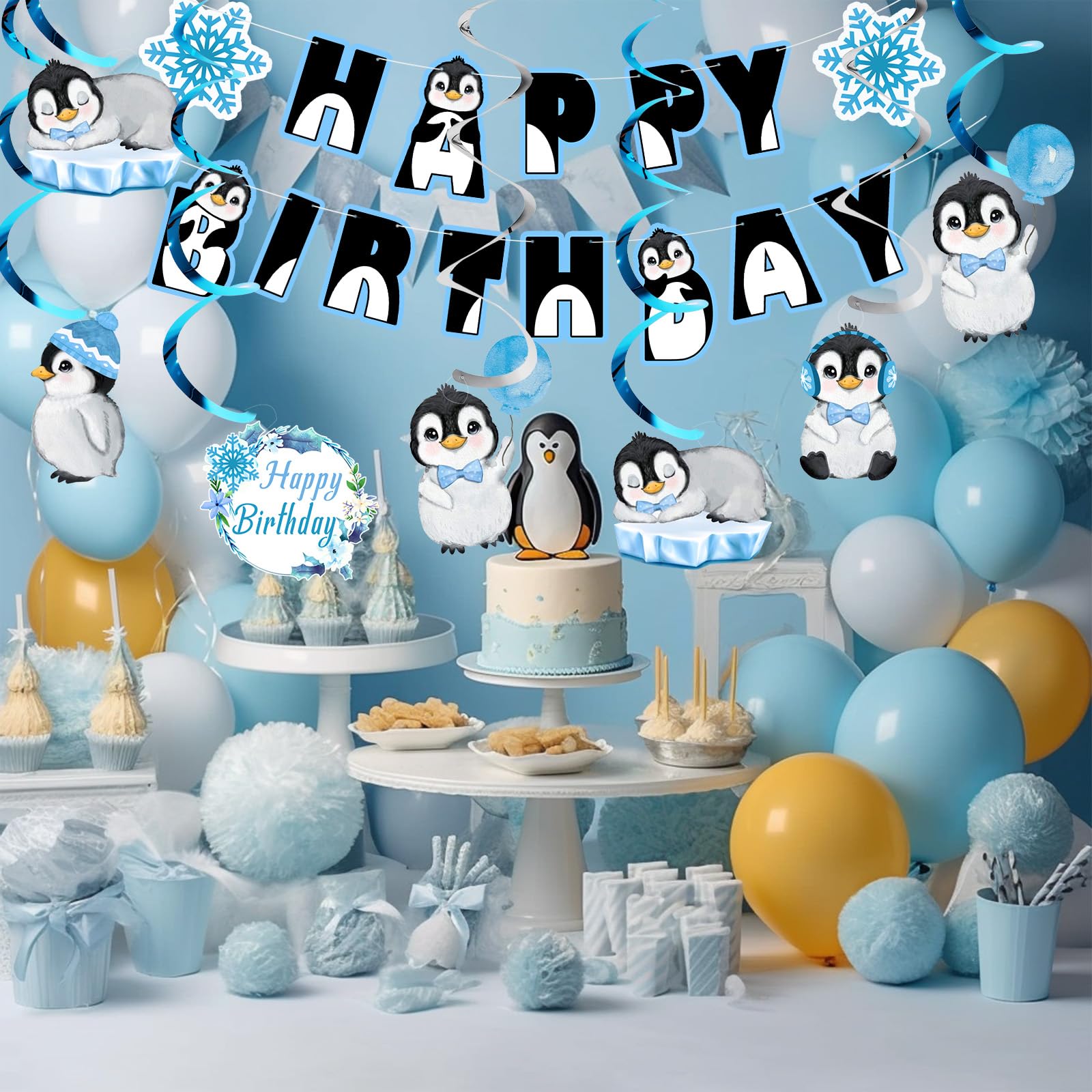 🐧Penguin Party Decor Set: The perfect newly designed penguin birthday party decorations contains 2 pieces cute penguin happy birthday banners, 12 pieces cute streamers. Everything is here for you, bring them back home for your penguin party.