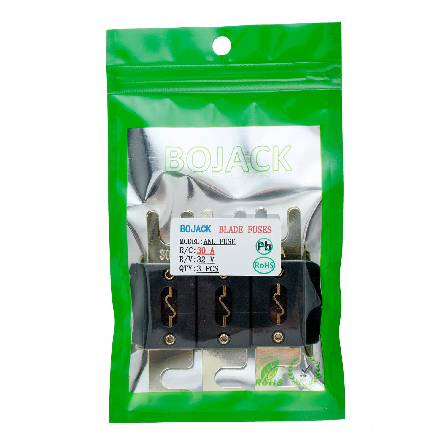 Gold tone plated metal sheet construction, durable and reliable to use, heat resistant, melting resistance and good conductivity, working for car audio and other high current applications Specifications: Rated Voltage: 32 VDC Rated Current: 30 A Fork Width: 19 mm / 0.75 inch U-shape Width: 8.3 mm / 0.33 inch Body Length: 36 mm / 1.42 inch Overall Size: 80x22.5x9 mm/ 3.15x0.9x0.35 inch (L*W*T)