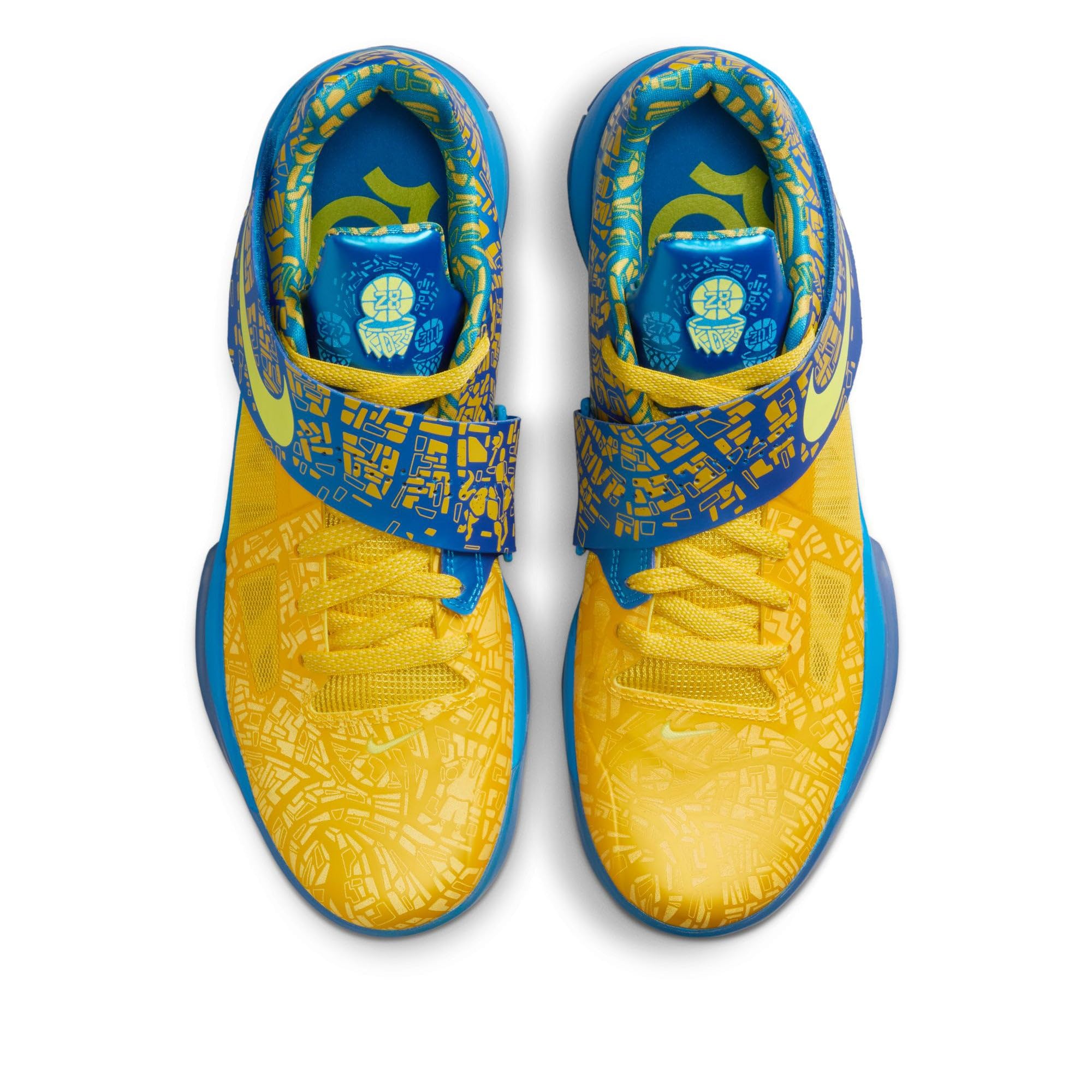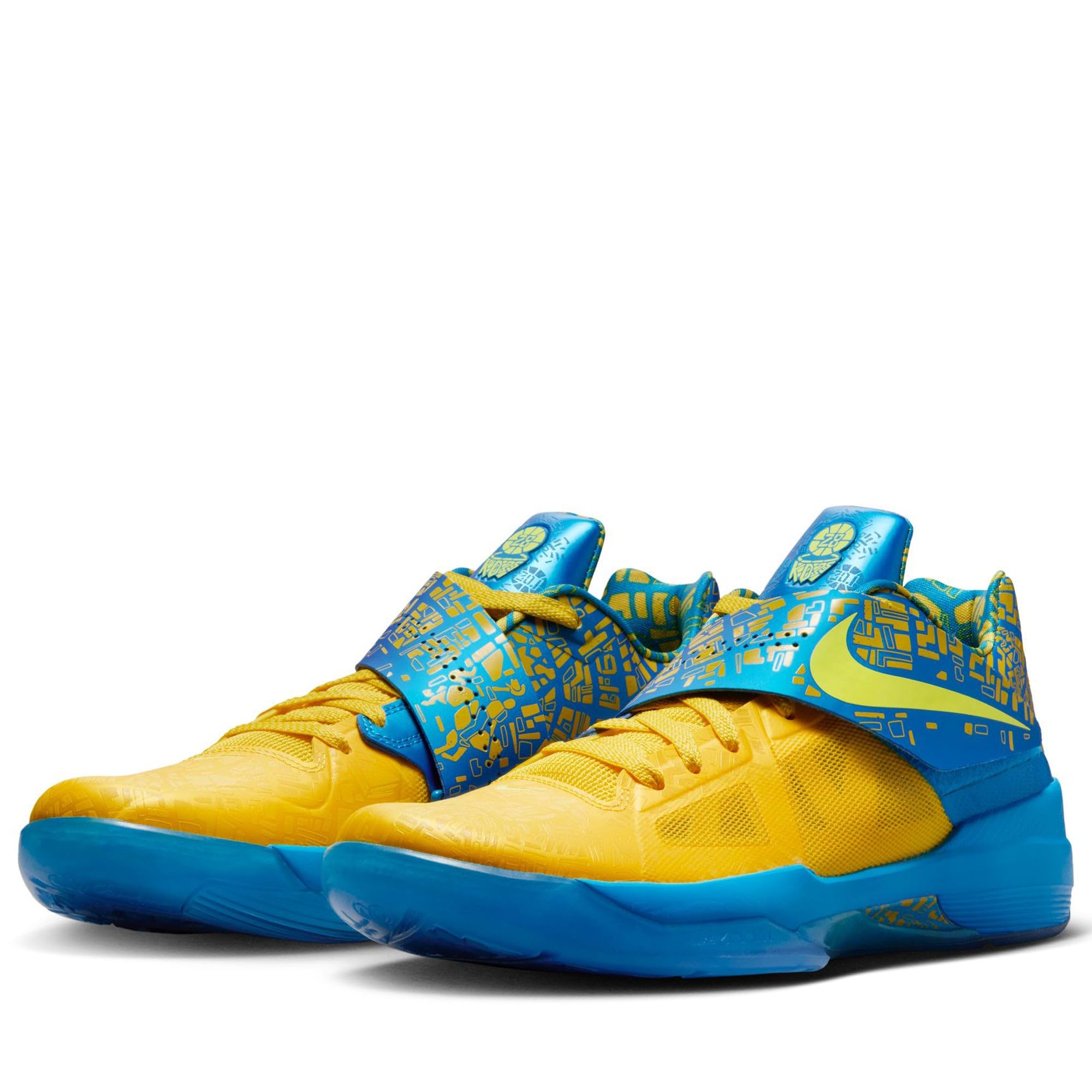 Description Reviving 90's nostalgia, this special KD 4 edition returns, eager to shake up bedroom hoops and rattle doorframes. With splattered straps and spray-painted tongue emblems, it's the 2011 collab that stormed both sneaker and basketball scenes. Court-ready, it boasts adjustable straps and a grippy gum sole for quick cuts, while a robust forefoot Air Zoom unit powers lightning-fast moves and full-court sprints.