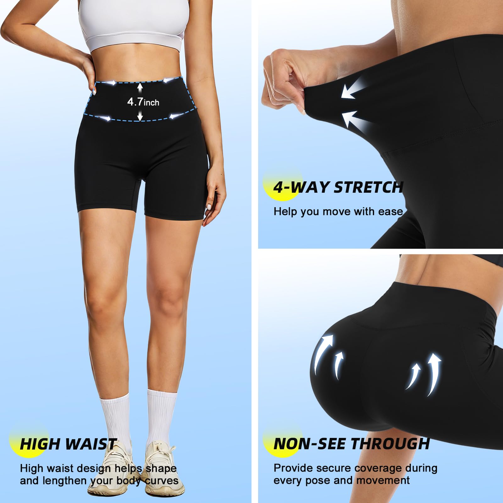 4 WAYS STRETCH & NON-SEE-THROUGH - This workout spandex shorts for women is made of 4 way stretch and non see through fabric, which provides maximum comfort and protection during your every pose and movement, allows for maximum comfort and wear ability