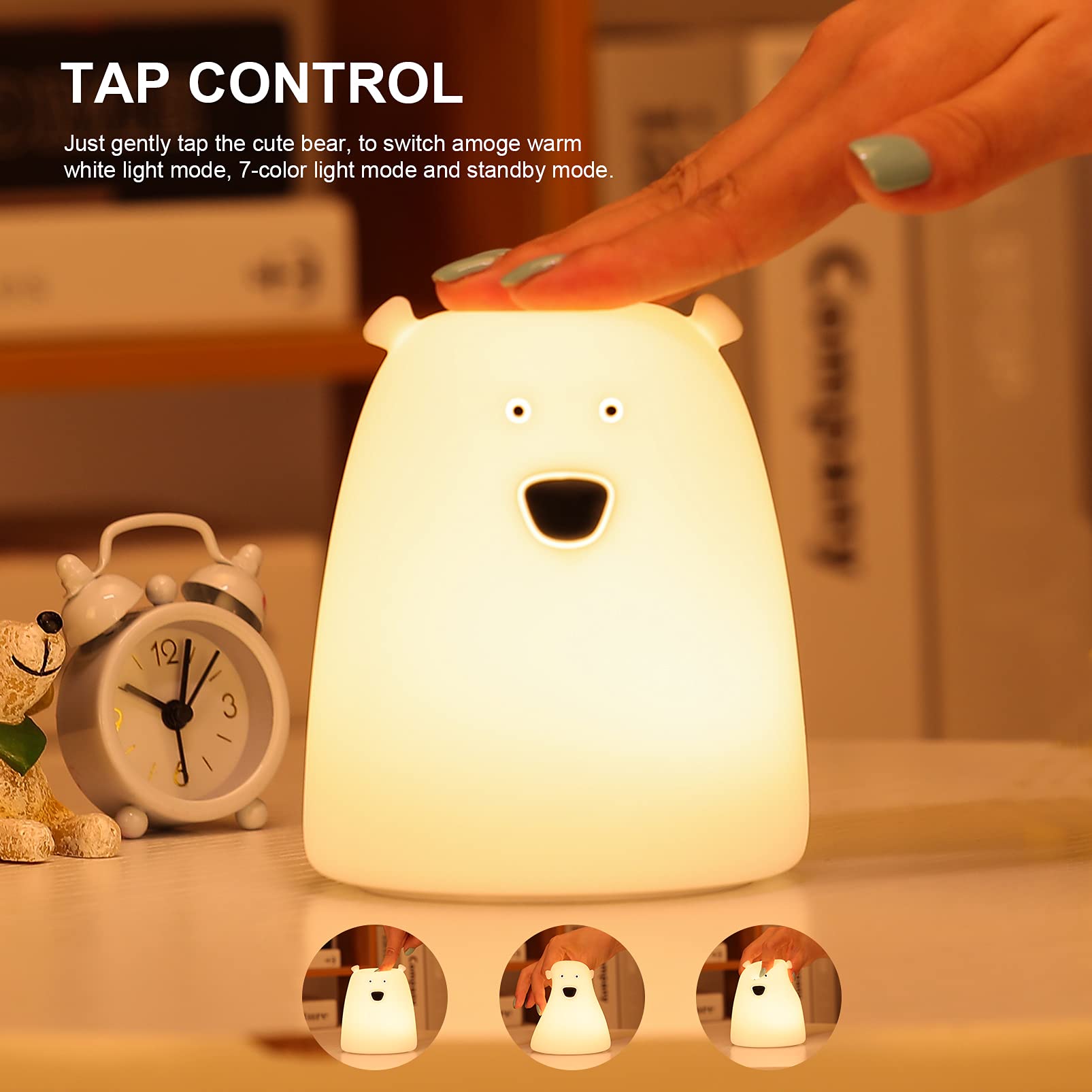 【CUTE BEAR DÉCOR】Portable hand-held size bear design, battery powered, wireless, and portable.Kids can hold little bear when they go to the toilet at night. 7 changing color bear also is a good decoration on the desk, window, bedside in the nursery room.