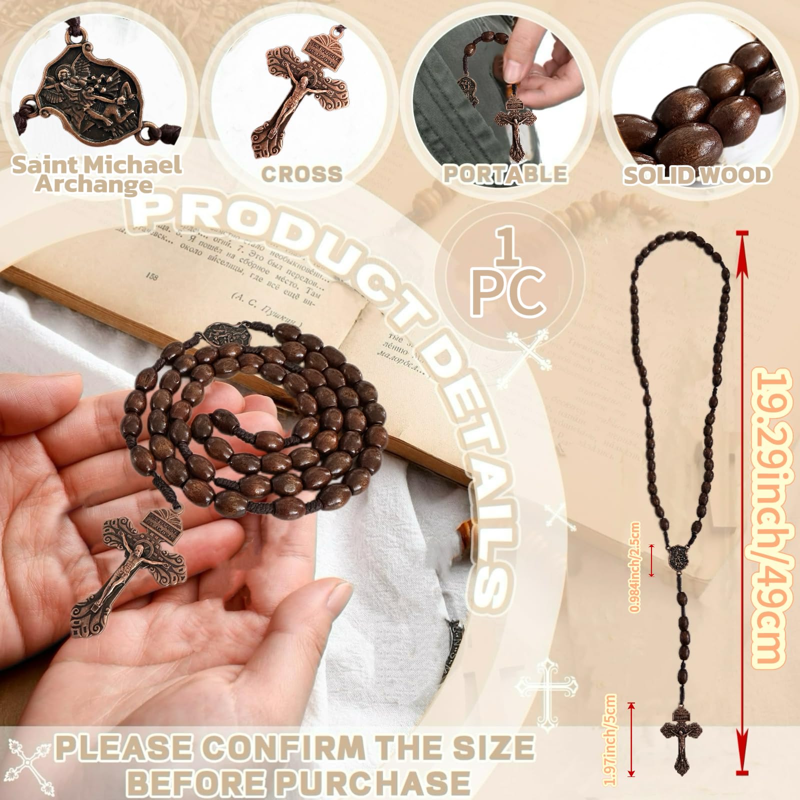 Traditional Design: Crafted with brown wood beads, a Saint Benedict medal, and a crucifix, this rosary honors Catholic traditions.
