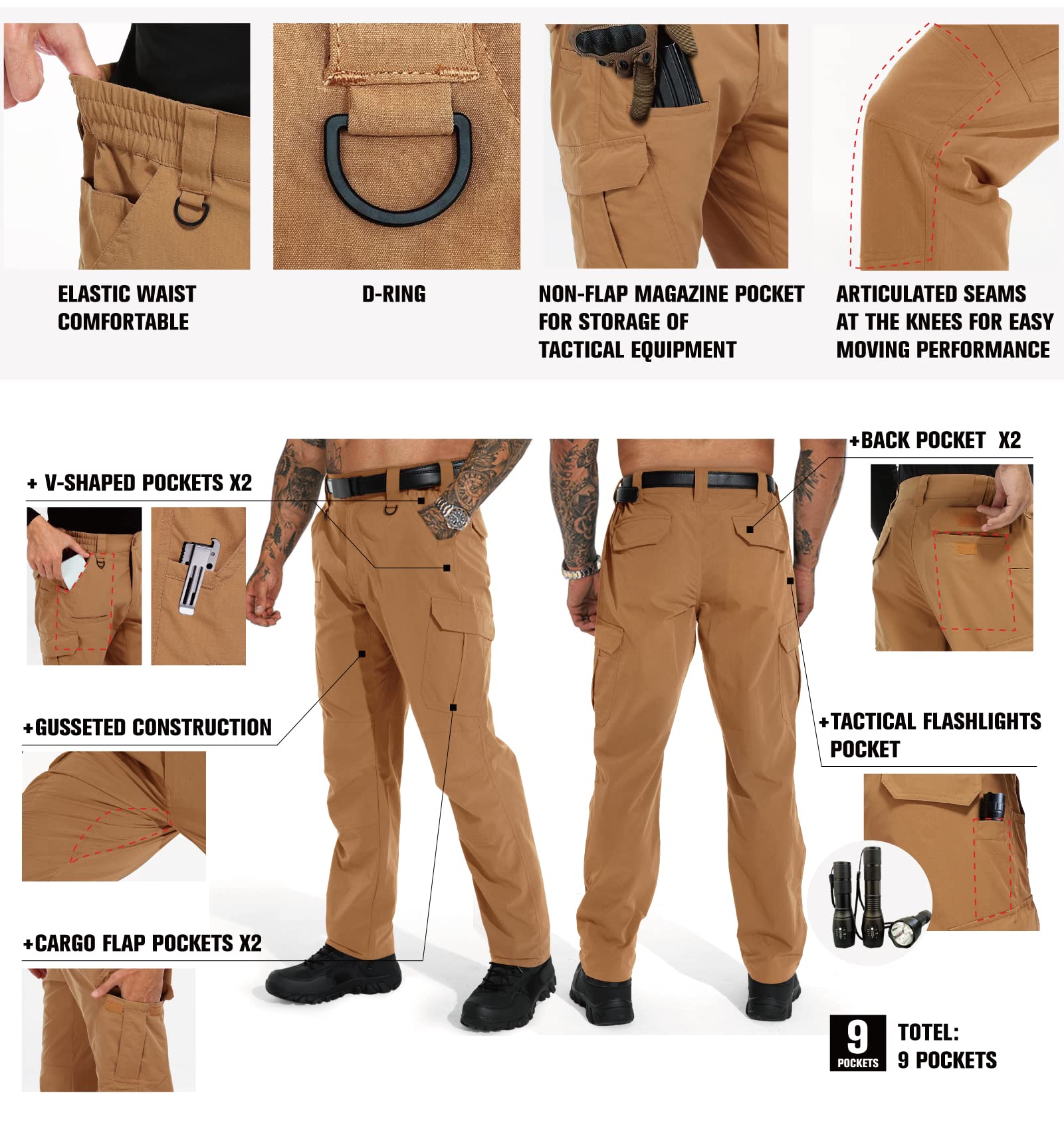 Lightweight tactical pants are made from ripstop fabric, the checkerboard weave prevents tears and abrasions while keeping the fabric weight down. The water-resistant finish resists soil, dirt, and stains for longer wear & maximum durability.