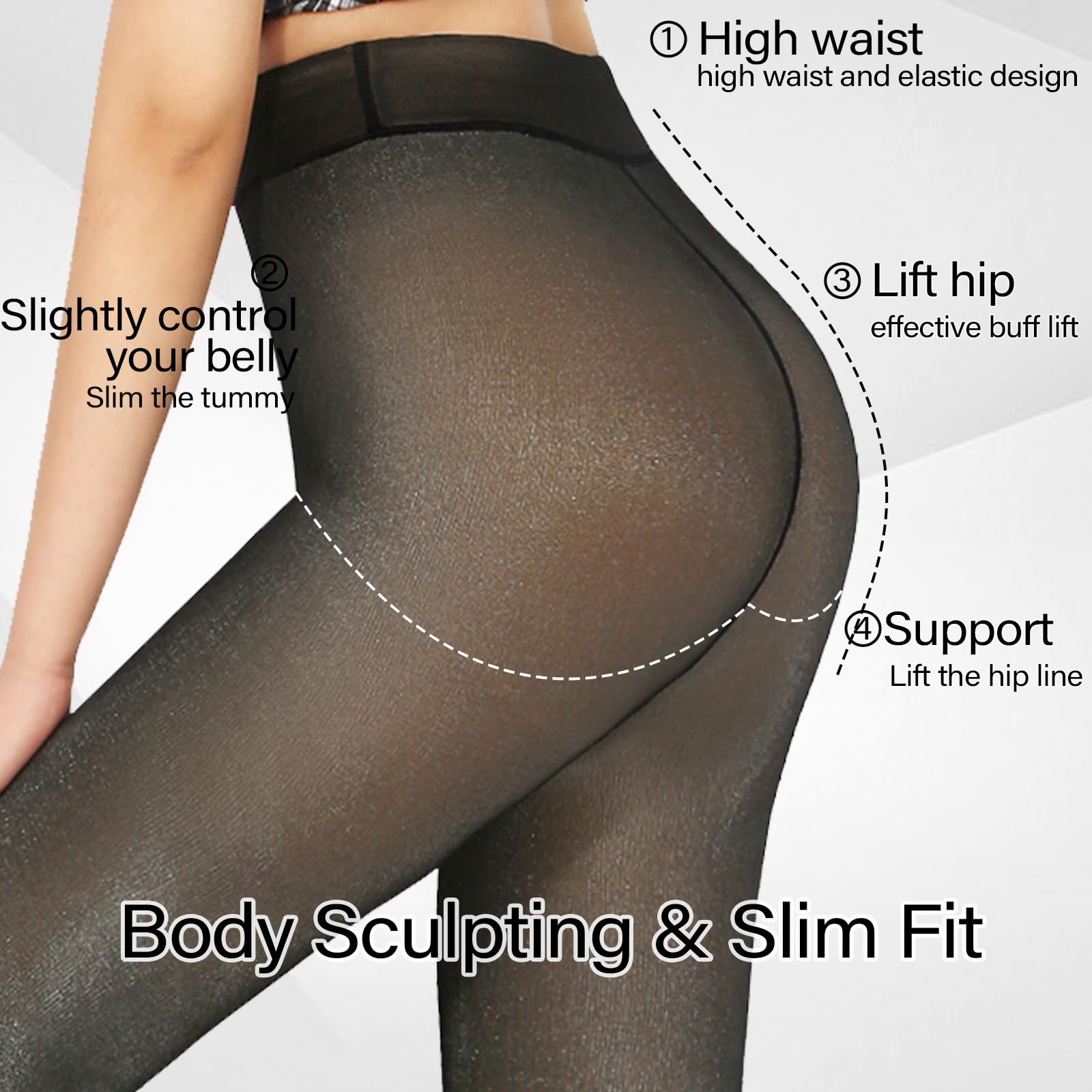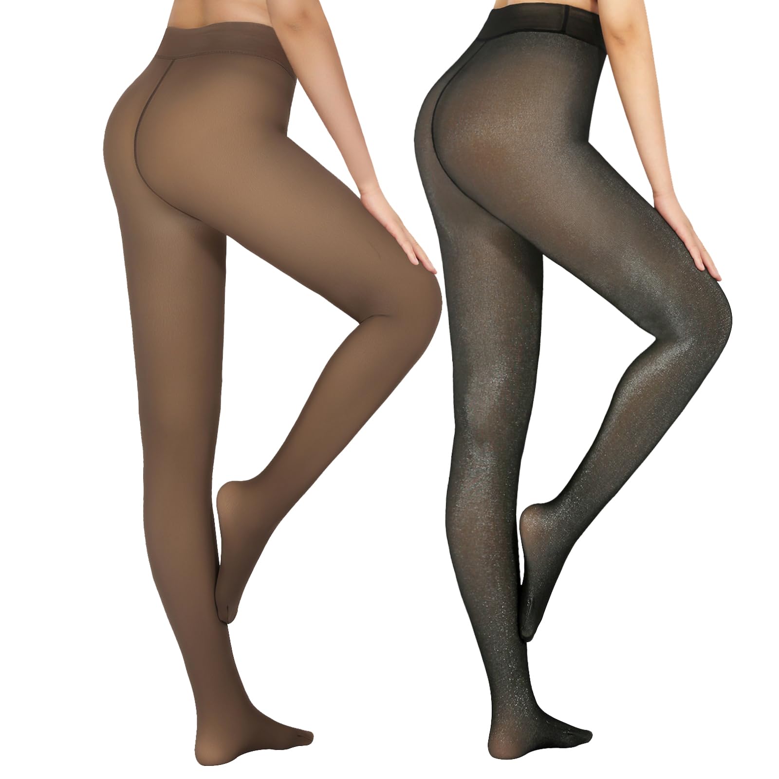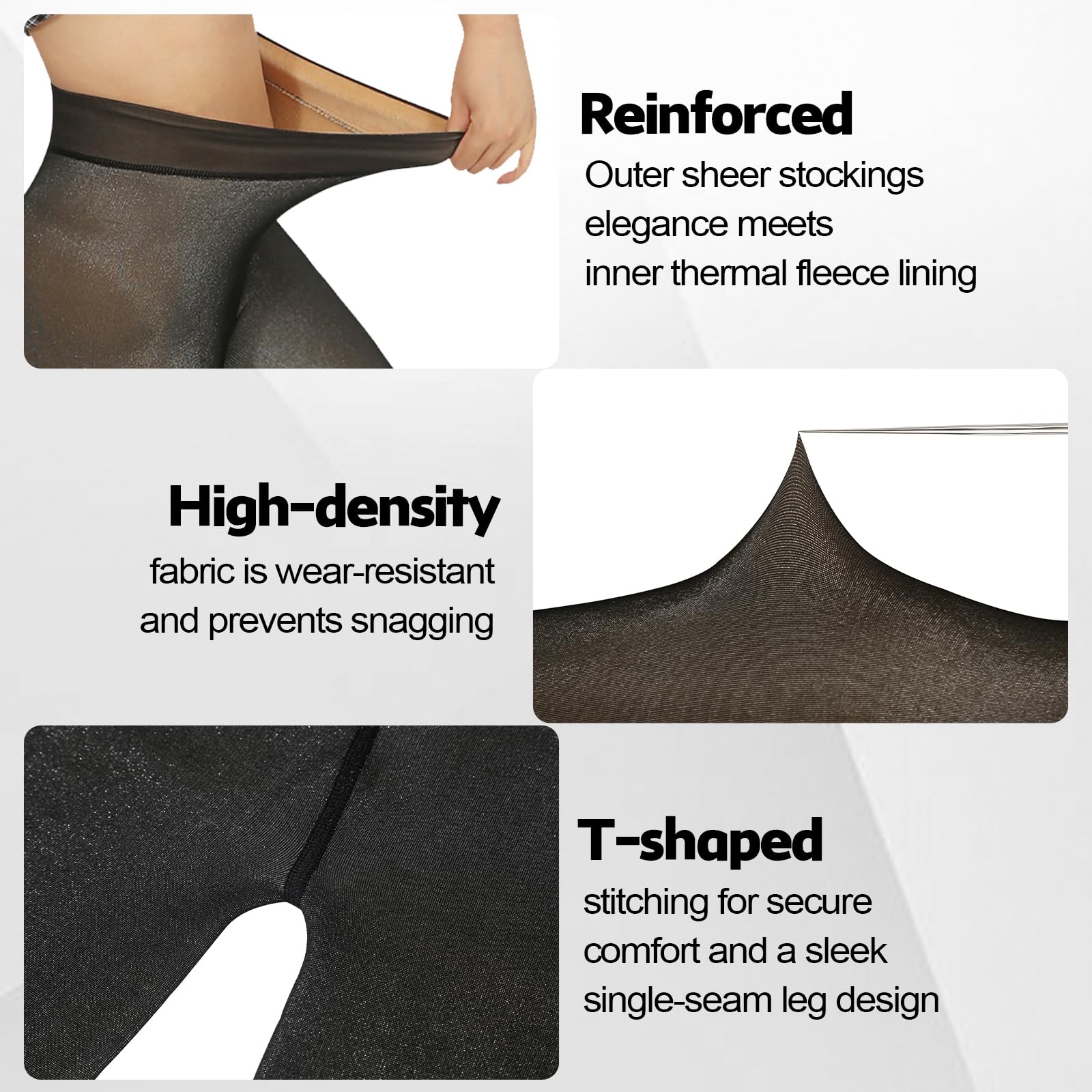 【Double the Value, Enduring Warmth 】:2 pairs of premium lined sheer black tights for women in one pack.220g thick fleece lined Thicken for warmth.Outer sheer stockings elegance meets inner thermal fleece lining – stand severe cold while flaunting your sexy figure effortlessly.(One of the 2 pairs of combo packs is a shiny tights with a shiny design that is as smooth as silk and shimmering)