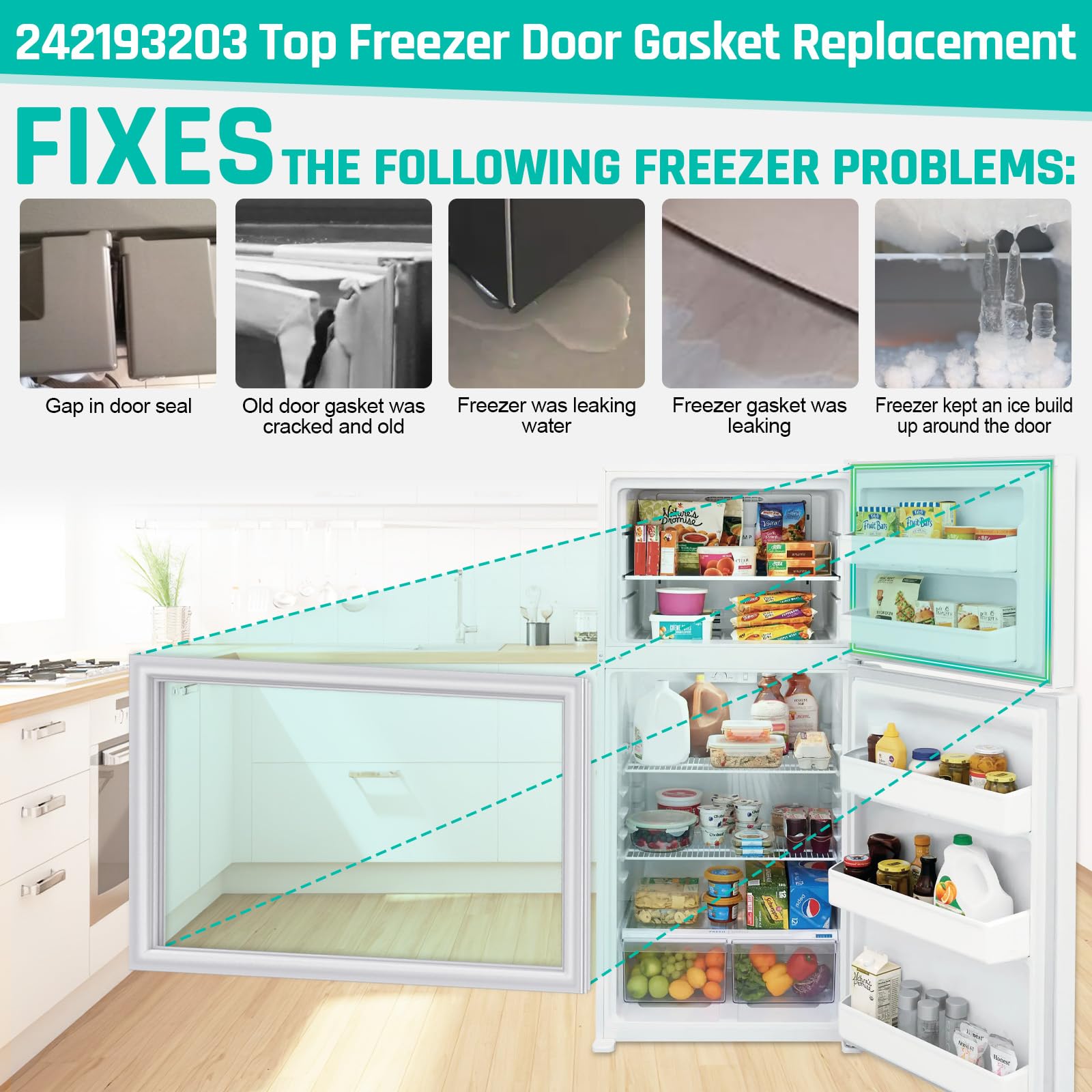 [Built-in Strong Suction Strip,Great Sealing ] Our gasket 242193203 uses thicken magnetic strips, resistant to bending, strong suction for effective sealing and functions the same as original OEM-branded parts, but quality seal better than OEM. Perfect insulates the outside air and creates a low-temperature environment to keep your food fresh. You no longer need to worry about food being oxidized or contaminated, 242193203 freezer door seal will guard the deliciousness for you.